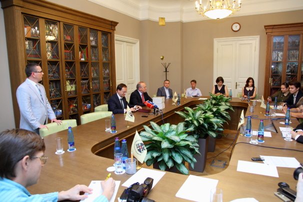 На встрече в присутствии журналистов участники встречи обсудили вопросы неоднозначных трактовок истории, современного понимания патриотизма и воспитания молодежи.