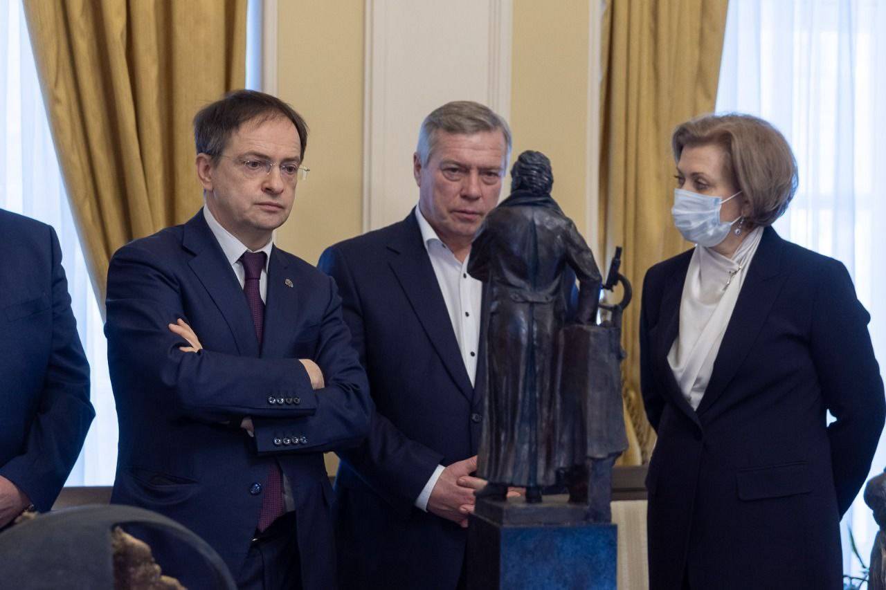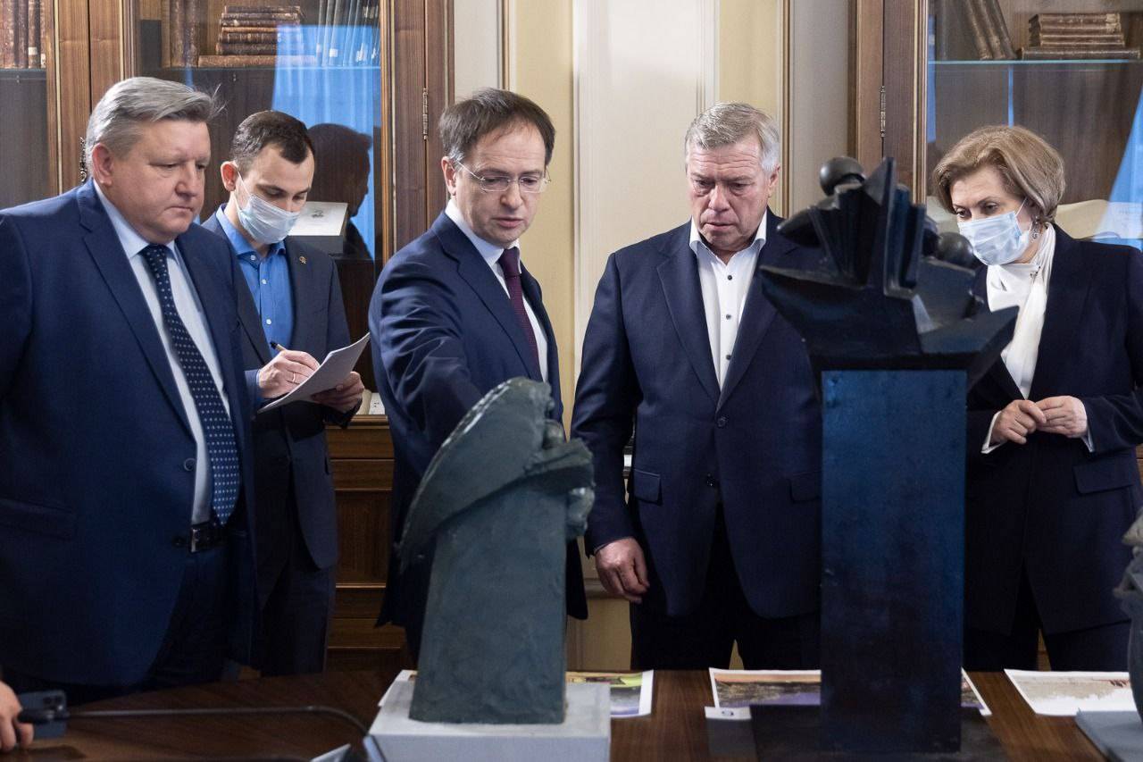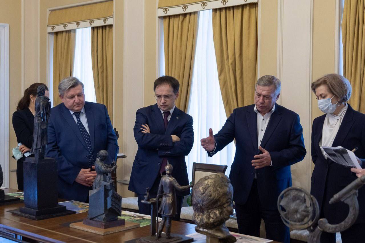 Владимир Мединский обсудил с Василием Голубевым и Анной Поповой установку памятников уроженцам Дона