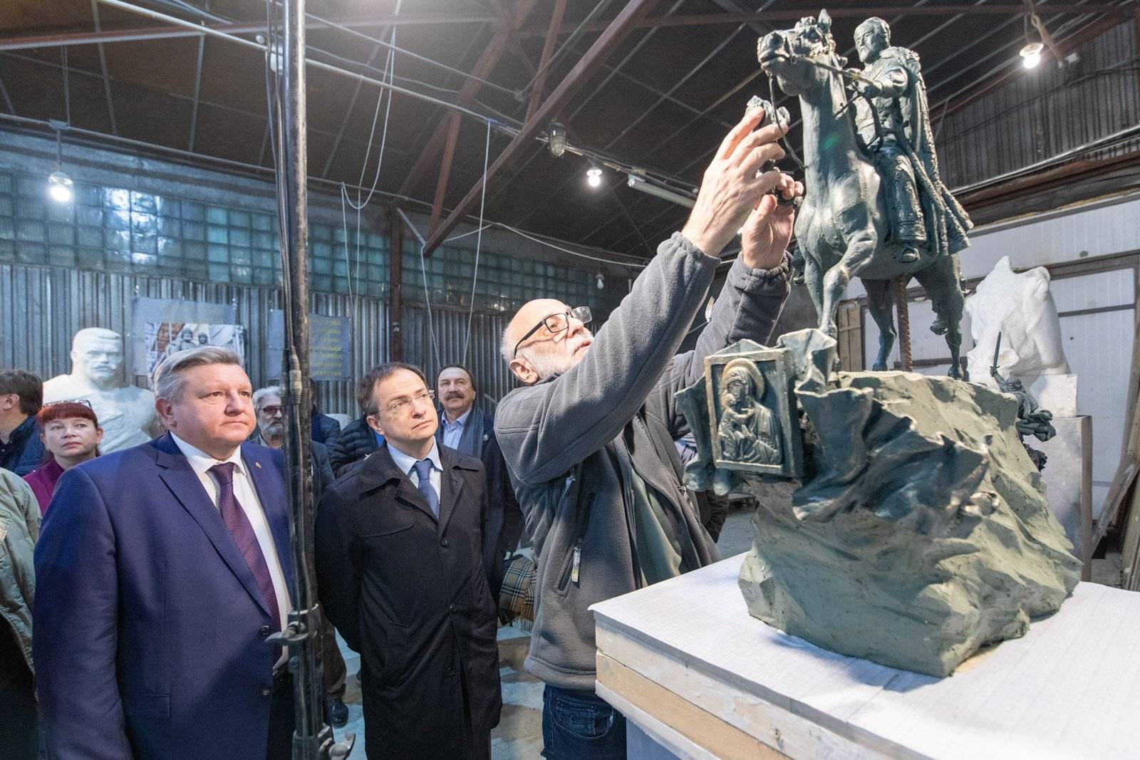 Владимир Мединский в целом одобрил обе скульптурные композиции, но призвал обратить внимание на детали, в частности, одежду князя.
