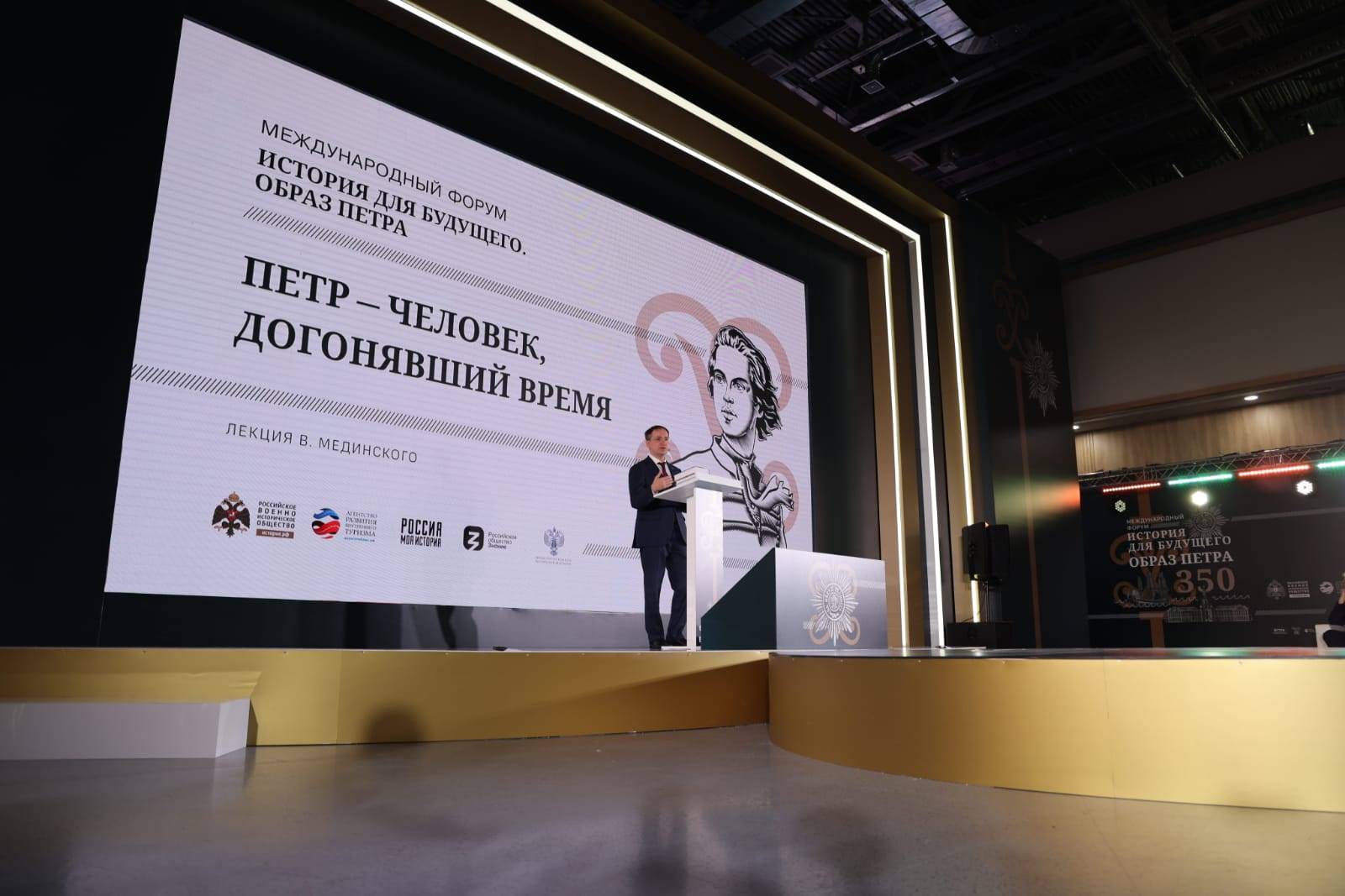 В рамках Международного форума «История для будущего. Образ Петра», приуроченного к 350-летию со дня рождения первого российского императора, помощник президента РФ, Председатель Российского военно-исторического общества Владимир Мединский выступил с лекцией о Петре Великом.