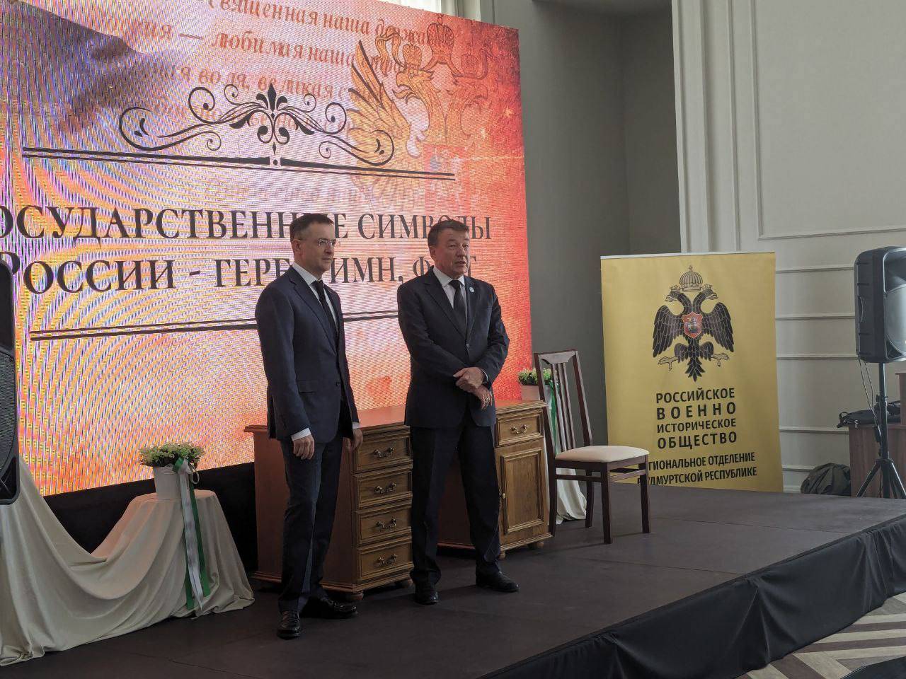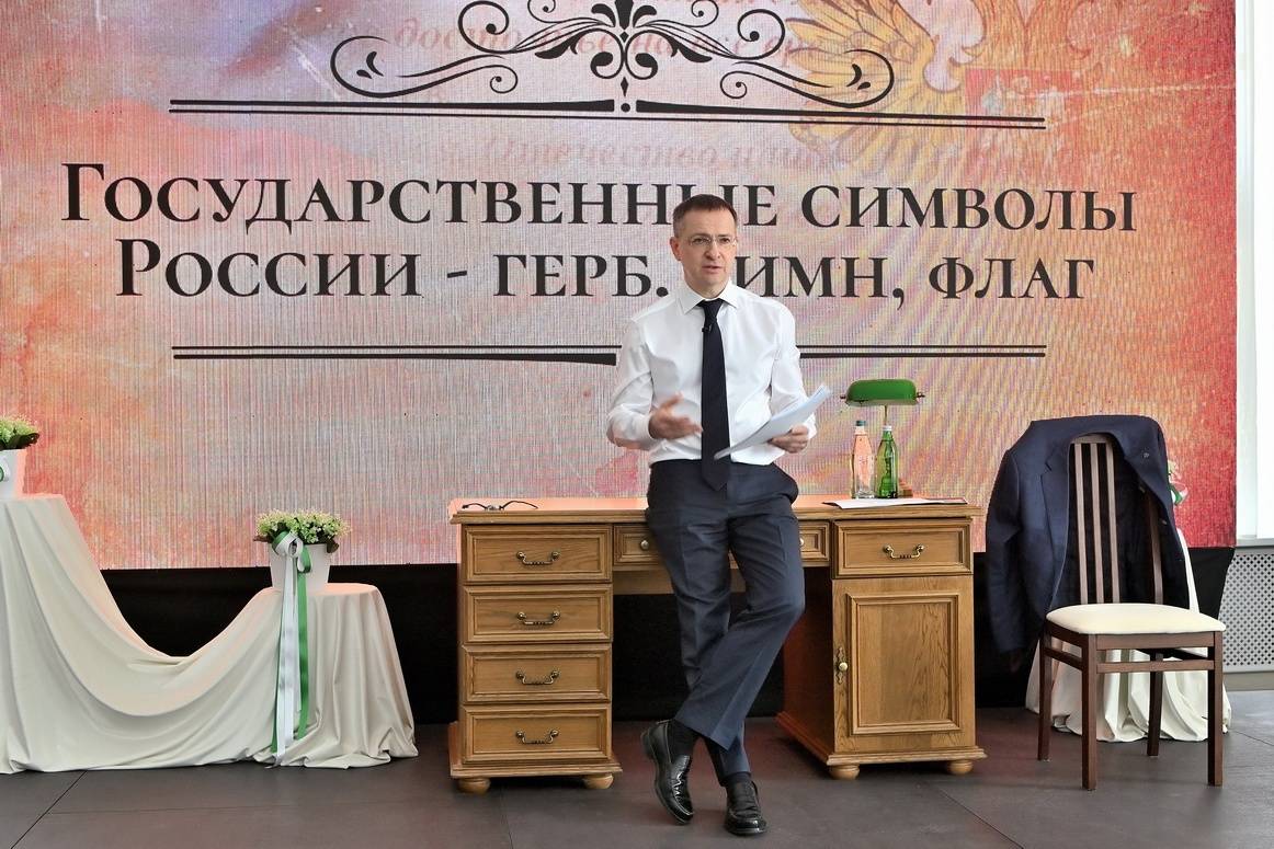 В этот день в Национальной библиотеке Удмуртской Республики Владимир Ростиславович прочитал лекцию «Государственные символы России - герб, гимн, флаг» об истории государственных символов Российской Федерации и их смыслах.