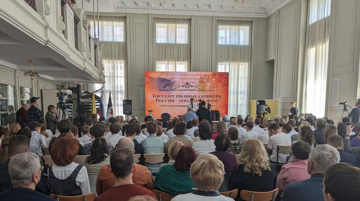 Лекция была посвящена приближающемуся Дню России, а её темой стали государственные символы Российской Федерации – герб, флаг, гимн. Лектор рассказал об истории их появления и изменения, о заложенных в них смыслах и традициях.