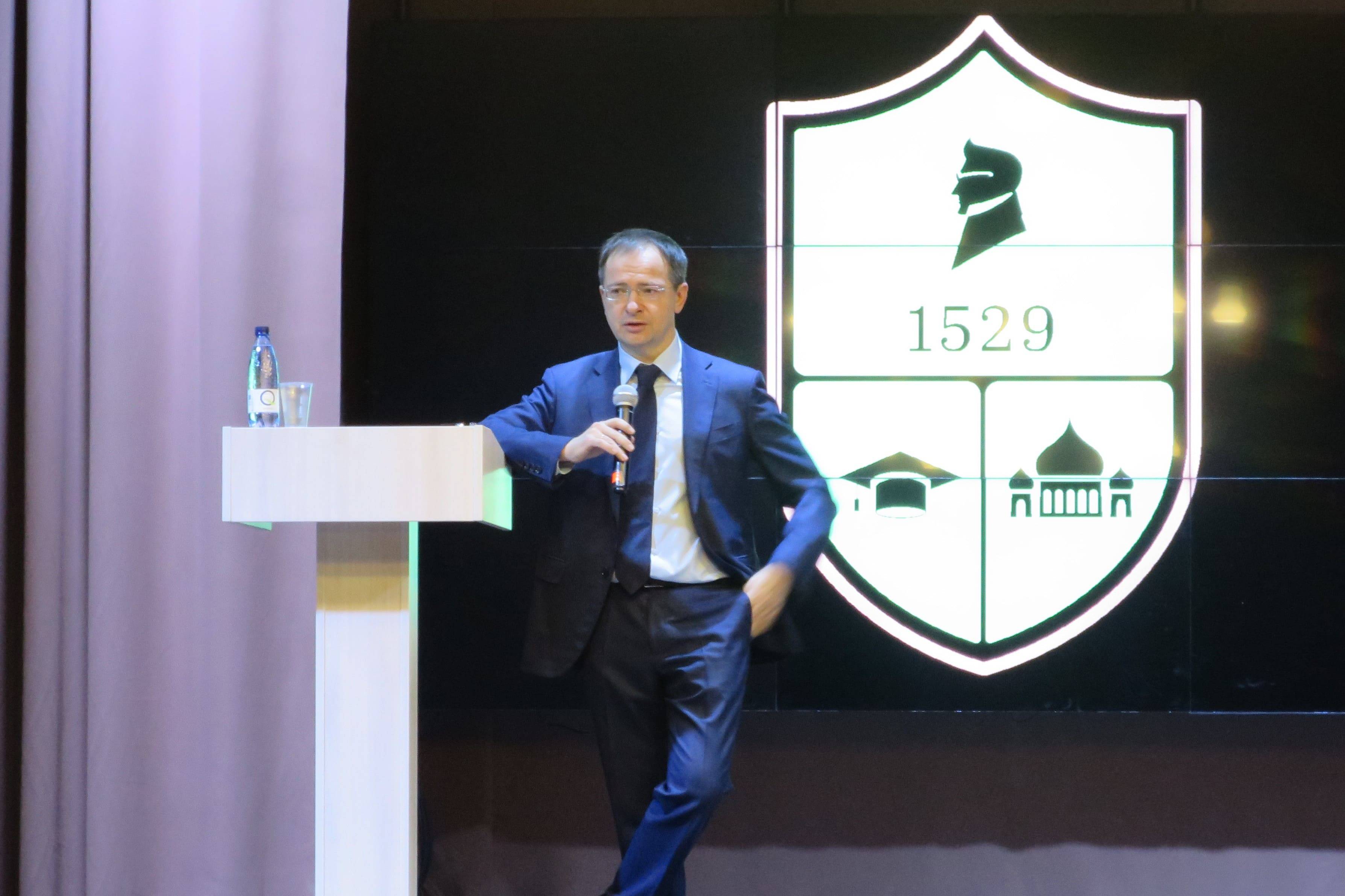 Помощник Президента РФ, Председатель Российского военно-исторического общества Владимир Мединский в День учителя посетил московскую гимназию №1529. Он поздравил педагогов с профессиональным праздником и обсудил с ними актуальные задачи и вопросы школьного образования, а также пообщался со старшеклассниками.