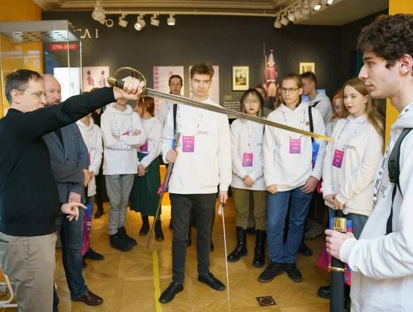 В ходе экскурсии Председатель РВИО подробно рассказал об истории военной формы, как она менялась в зависимости от политической ситуации и предпочтений русских правителей. Каким изменениям подверглись оружие, снаряжение солдат и офицеров. Студентам показали, как правильно пользоваться саблей и мушкетом. Желающие могли примерить военные головные уборы разных эпох.