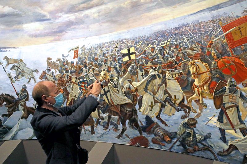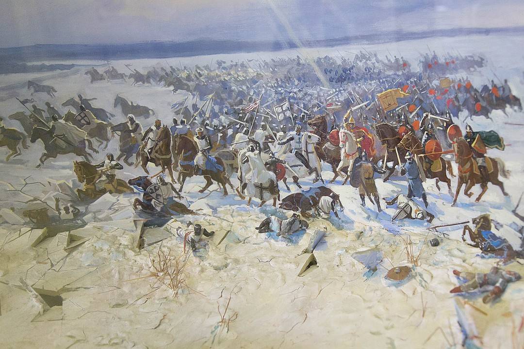 В аванзале экспонируется работа современного живописца Евгения Емельянова — панорама «Ледовое побоище». Для создания произведения в классической технике маслом на холсте размером 15 на 4 метра автору потребовалось шесть лет. Финансовую и научную поддержку в создании панорамы оказало Региональное отделение РВИО в Санкт-Петербурге и Ленинградской области, благодаря усилиям которого уникальное полотно было доставлено из северной столицы в Москву. Диорама представлена в Третьяковской галерее временно. После завершения строительства на берегу Чудского озера (в деревне Самолва Псковской области) музея, посвященного Ледовому побоищу, полотно будет располагаться в нём и станет частью масштабного архитектурно-мемориального комплекса «Князь Александр Невский с дружиной».