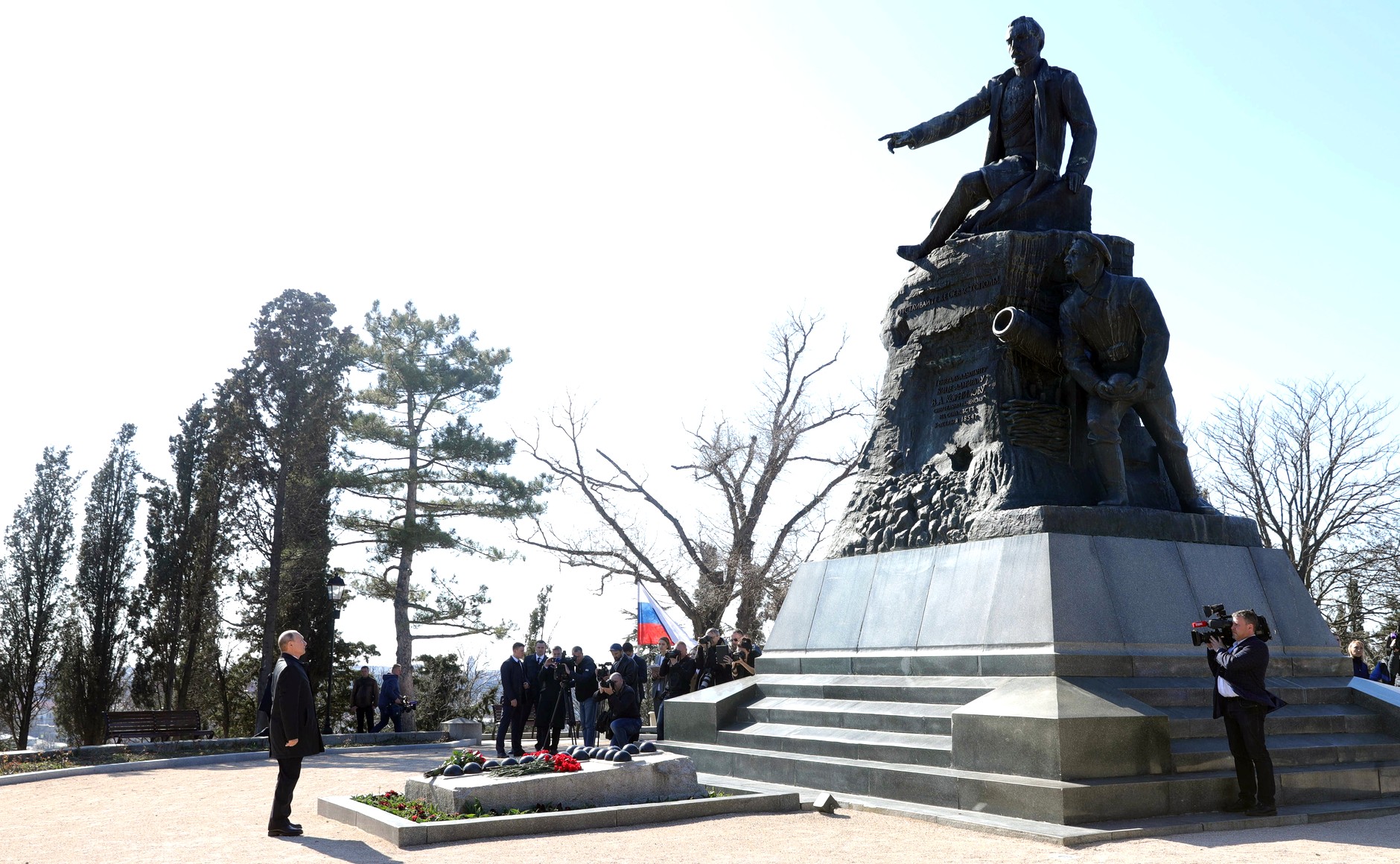 В ходе посещения мемориального комплекса «Малахов курган» Владимир Путин возложил цветы к памятнику вице-адмиралу Владимиру Корнилову.