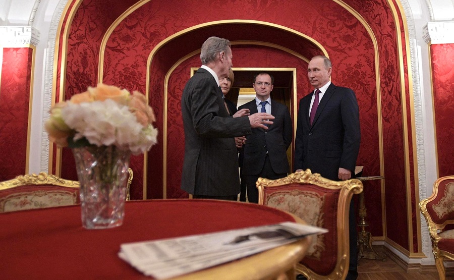 Глава государства также провел краткую беседу с руководством театра о реконструкции исторической сцены, завершившейся в декабре 2016 года, и текущем положении дел в театре. Во встрече также принял участие Министр культуры Российской Федерации, Председатель Российского военно-исторического общества Владимир Мединский.
