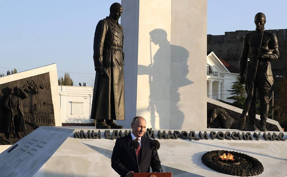 В День народного единства Президент Российской Федерации Владимир Путин посетил в Севастополе мемориальный комплекс, посвящённый жертвам Гражданской войны в России ХХ века. Глава государства возложил цветы к вечному огню у подножия монумента и поздравил крымчан и всех граждан России с государственным праздником. Памятник установлен Российским военно-историческим обществом совместно с Правительством Севастополя по поручению Президента РФ и по инициативе Международного совета российских соотечественников.