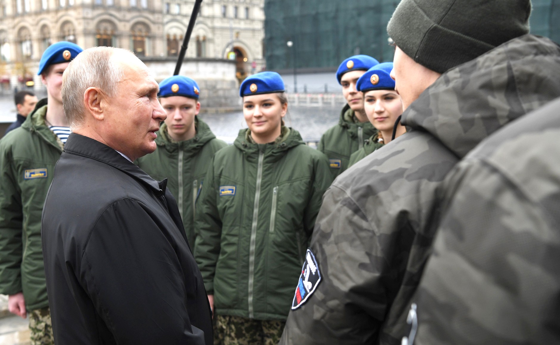 Вместе с Главой государства в возложении цветов приняли участие представители молодёжи из военно-патриотического центра «Вымпел» и Поискового движения России. Президент кратко с ними побеседовал.