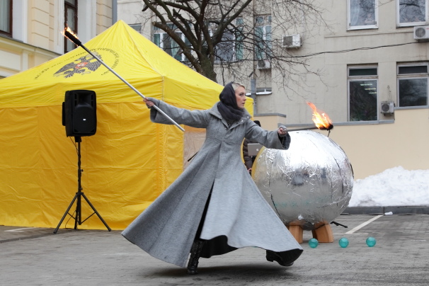 «Сквер Победителей» открыт в центре Москвы по инициативе РВИО и посвящен защитникам Отечества. В честь начала весеннего сезона театр дель-арте «Грим масса» представил спектакль «МИР». В необычной уличной постановке смешались танец и пантомима, цирковые жанры и арт объекты. Спектакль, рассказывающий о войне и мире, пришелся по душе юным зрителям и представителям старшего поколения.