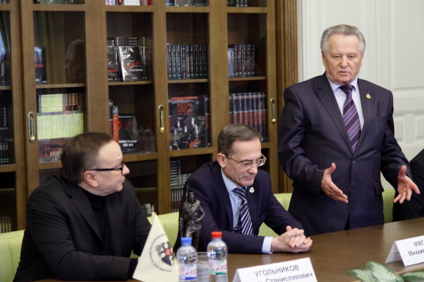 В завершение встречи Исполнительный директор РВИО Владислав Кононов передал Игорю Угольникову уменьшенную копию памятника героям Первой мировой войны, который в 2014 году на Поклонной горе в Москве открыл Президент Российской Федерации Владимир Путин.