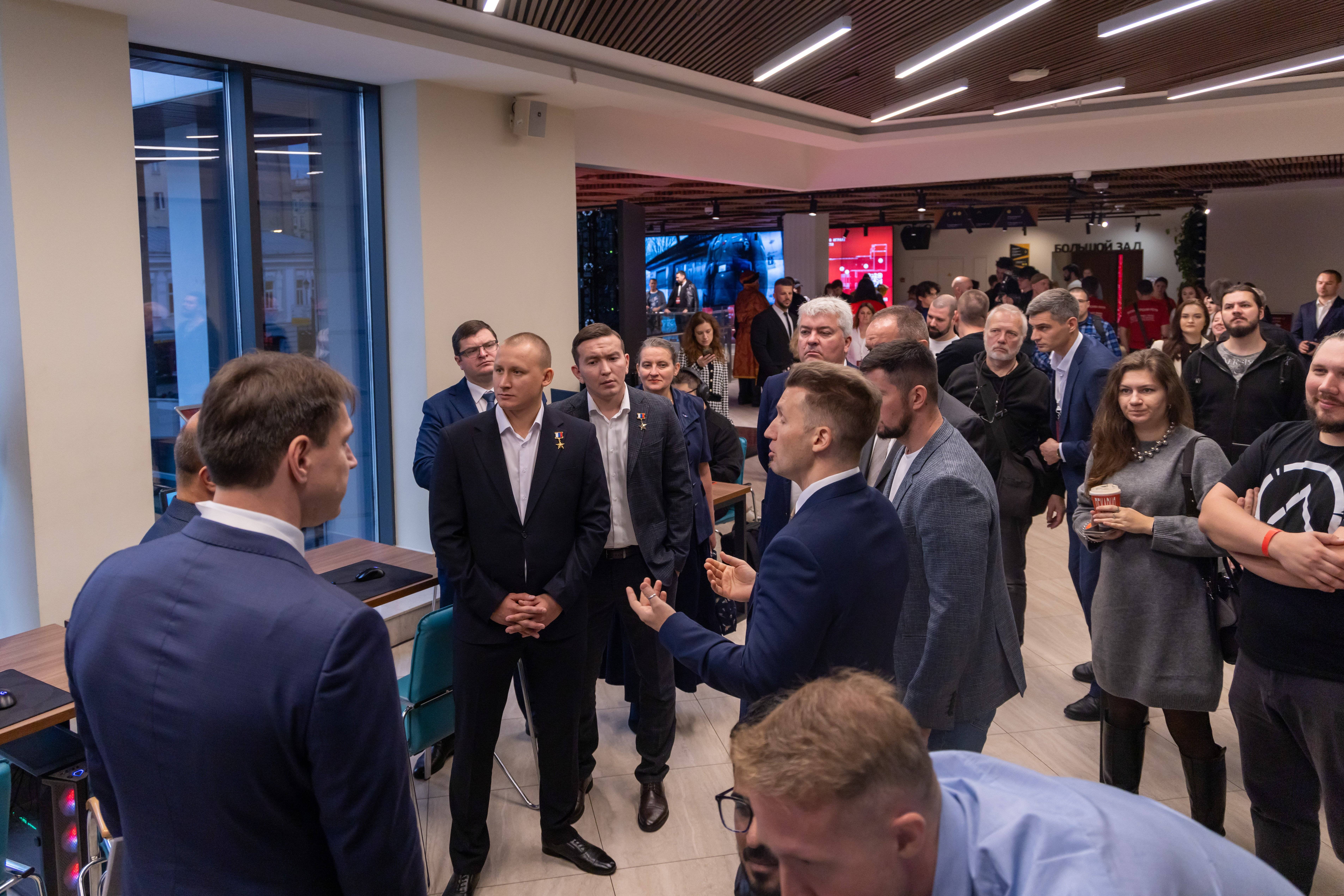 Для юных посетителей форума работали интерактивные зоны: кибертурнир по игре «Передний край», игротека с историческими настольными играми, масштабные игровые пространства и хакатон для начинающих разработчиков.