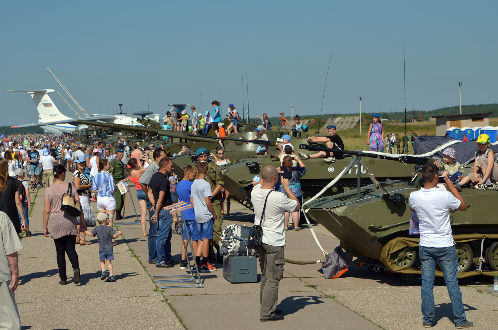 Ожидаемым интересом у зрителей пользовались выступления воинов-десантников 98 гвардейской воздушно-десантной дивизии, парапланеристов, авиамоделистов и парашютистов. На аэродроме работали несколько спортивных площадок по различным видам спорта, в том числе площадка для сдачи нормативов ГТО. Представители Федерации экстремальных видов спорта Ивановской области помимо показательных выступлений своих спортсменов подготовили необычный сюрприз для зрителей – силовой экстрим от сильнейших людей России. Атлеты Александр Клюшев и Александр Лысенко вдвоем на глазах у гостей праздника сдвинули самолет АН-26 весом 26 тонн.