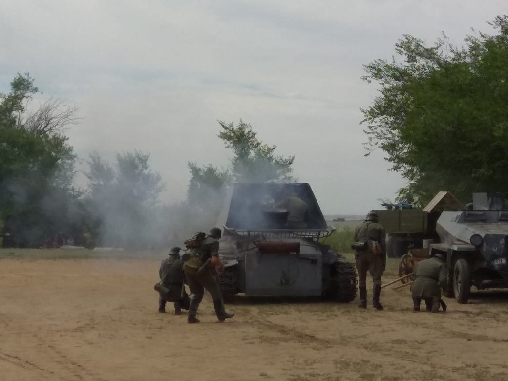 Перед юными зрителями развернулся один из боев начала Сталинградской битвы. В исторической постановке приняли участие 40 человек, а также военная техника времен войны. Ребята увидели советский автомобиль ЗиС-5, немецкую самоходно-артиллерийская установку «Мардер», бронетранспортер, артиллерийские орудия, винтовки, автоматы, пистолеты.