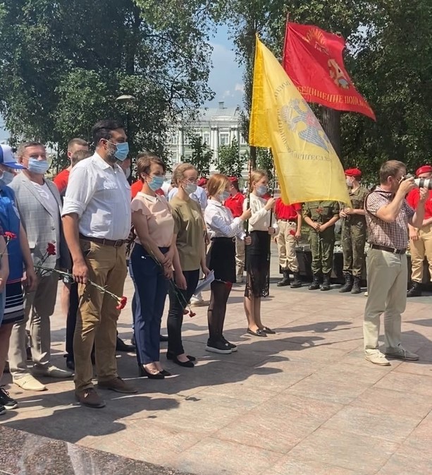 в 12 часов 15 минут вологжане приняли участие во Всероссийской минуте молчания. Именно в эти минуты, 80 лет назад, в 1941 году, жителям Советского Союза официально сообщили о нападении на страну фашистской Германии и начале Великой Отечественной войны. В ходе торжественного мероприятия у мемориала «Вечный огонь» члены МОО "ВОЛОГОДСКОЕ ОБЪЕДИНЕНИЕ ПОИСКОВИКОВ", Вологодское отделение РВИО, губернатор Вологодской области Олег Кувшинников, Председатель ЗСО Андрей Луценко и мэр Вологды Сергей Воропанов возложили цветы в память обо всех погибших на войне.