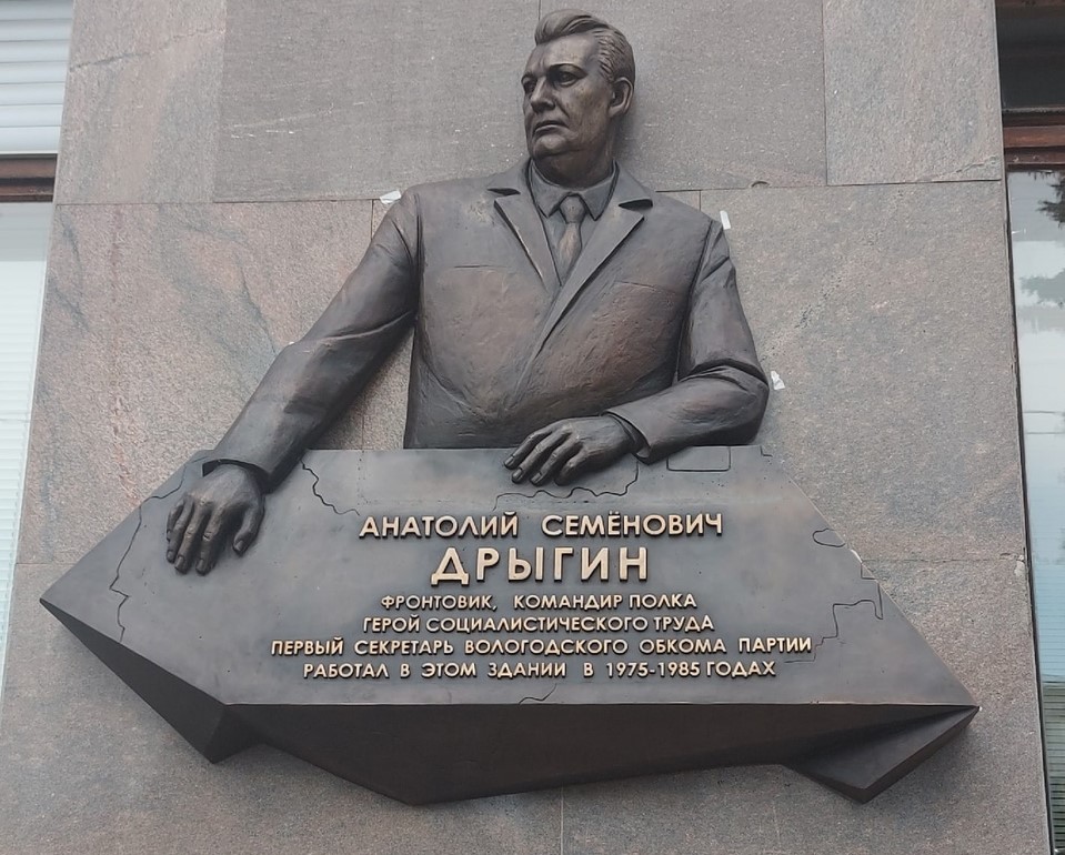 На здании Законодательного собрания области, где в советские годы размещался обком партии, прошла церемония открытия мемориальной доски Анатолию Семеновичу Дрыгину -первому секретарю Вологодского обкома КПСС, Герою Социалистического Труда, участнику Великой Отечественной войны. С инициативой установить горельеф к мэру Вологды Сергею Воропанову обратились Вологодское землячество в Москве и Вологодское отделение РВИО, которое взяло на себя роль оператора сбора средств. Горельеф создан на добровольные пожертвования, в том числе и тех предприятий, которые возникли в области в годы руководства Дрыгина.