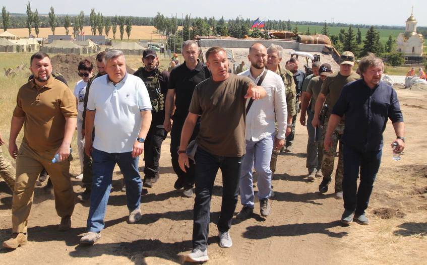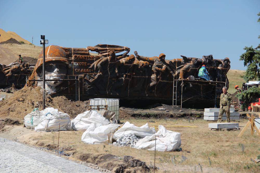 Николай Овсиенко и Денис Пушилин проинспектировали ход восстановительных работ на территории Саур-Могилы. Вместе с экспертами Российского военно-исторического общества и Военно-строительного комплекса Министерства обороны РФ они провели анализ того, что сделано и что предстоит сделать в ближайшее время. Так «верхняя площадка» мемориала уже подготовлена для установки основной стелы и фигуры Солдата Победы. Здесь же будет зажжен Вечный Огонь.