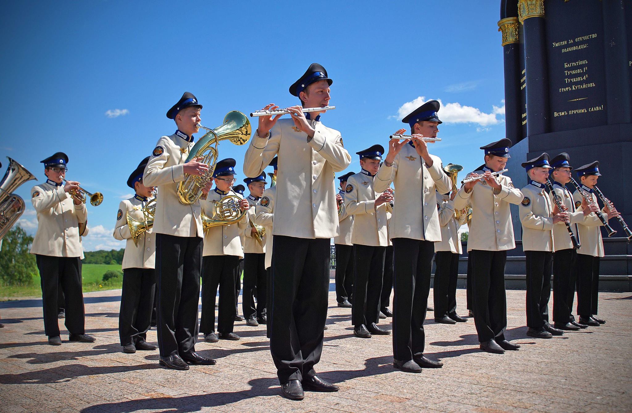 После приветствия почетных гостей состоялось праздничное выступление духового оркестра Музыкального кадетского корпуса имени Александрова (МГИК)»