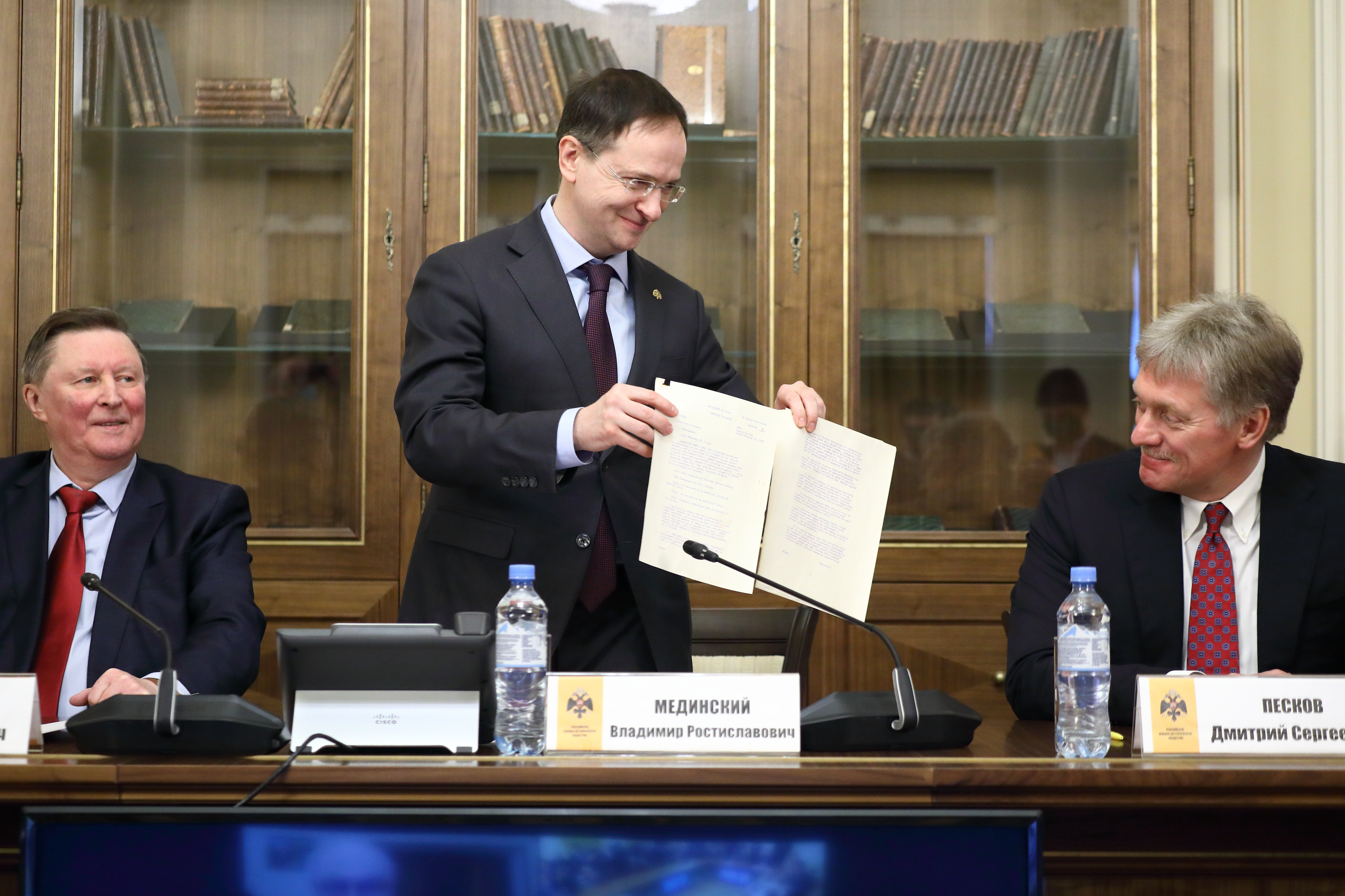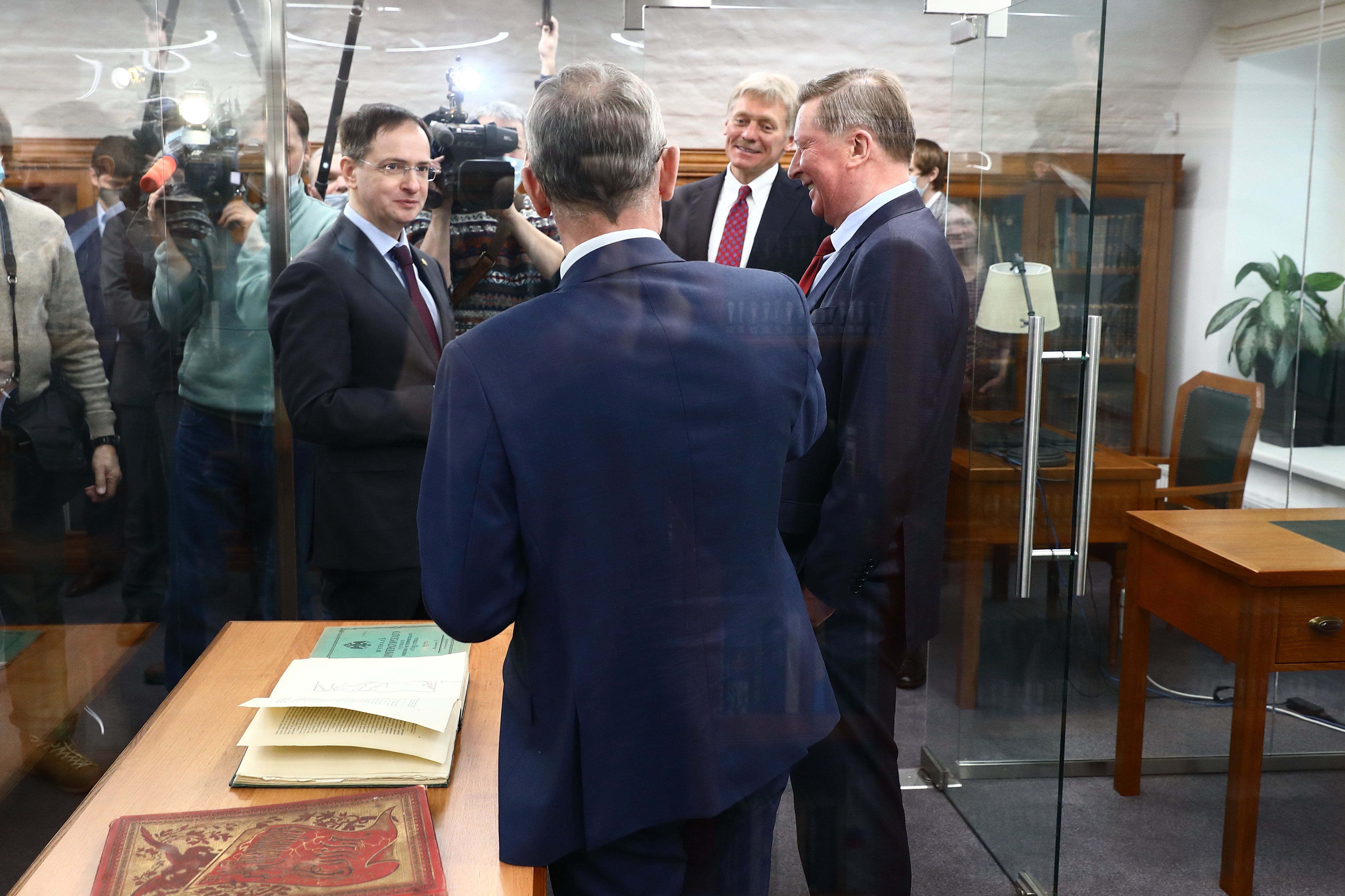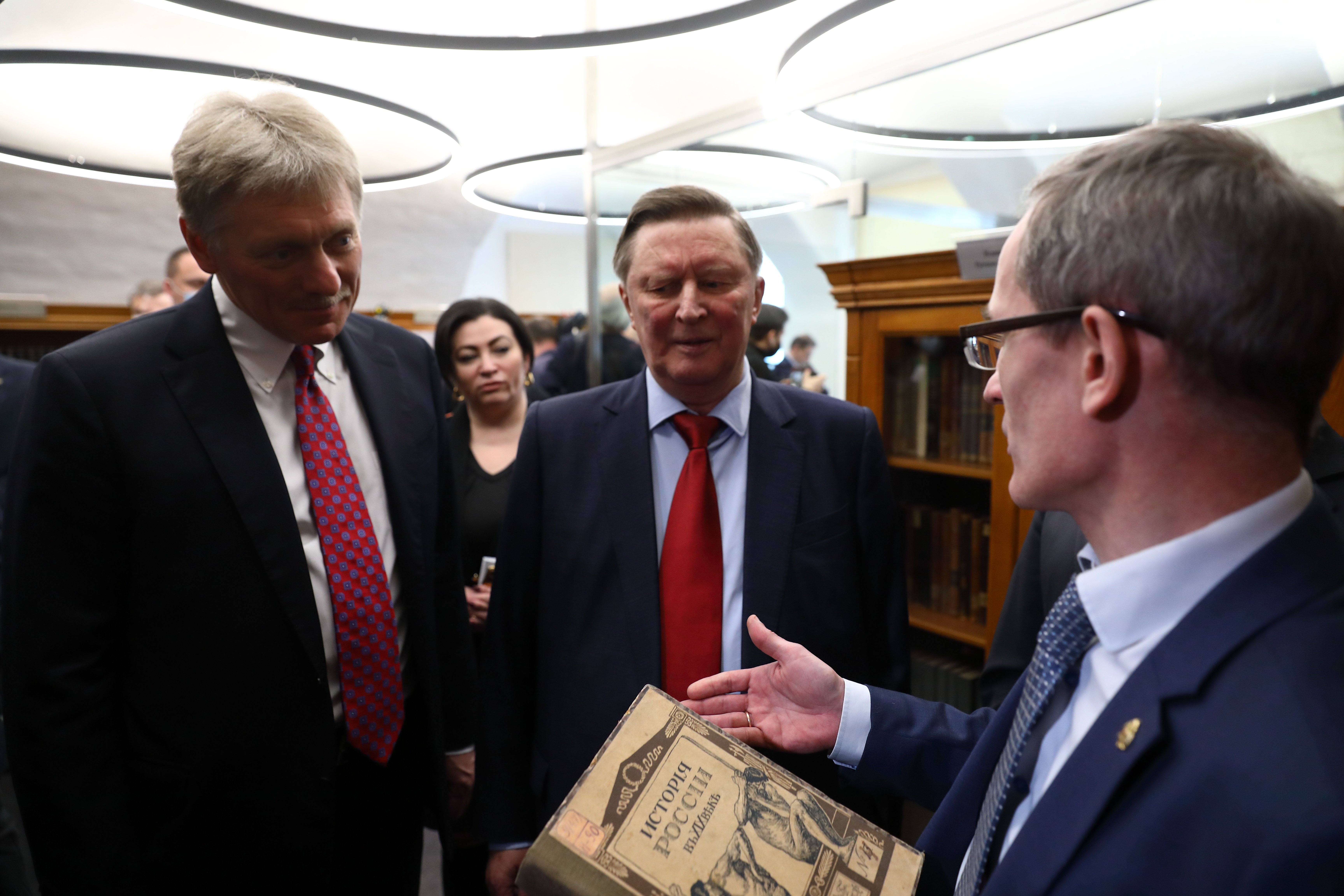 Торжественная церемония открытия второй очереди Библиотеки военного историка состоялась сегодня в штаб-квартире Российского военно-исторического общества. В ней приняли участие Помощник Президента РФ, Председатель РВИО Владимир Мединский, Спецпредставитель Президента РФ по вопросам природоохранной деятельности, экологии и транспорта, Председатель Попечительского совета РВИО Сергей Иванов, Заместитель Руководителя Администрации президента – пресс-секретарь Президента РФ Дмитрий Песков и Научный руководитель Института всеобщей истории РАН академик Александр Чубарьян.