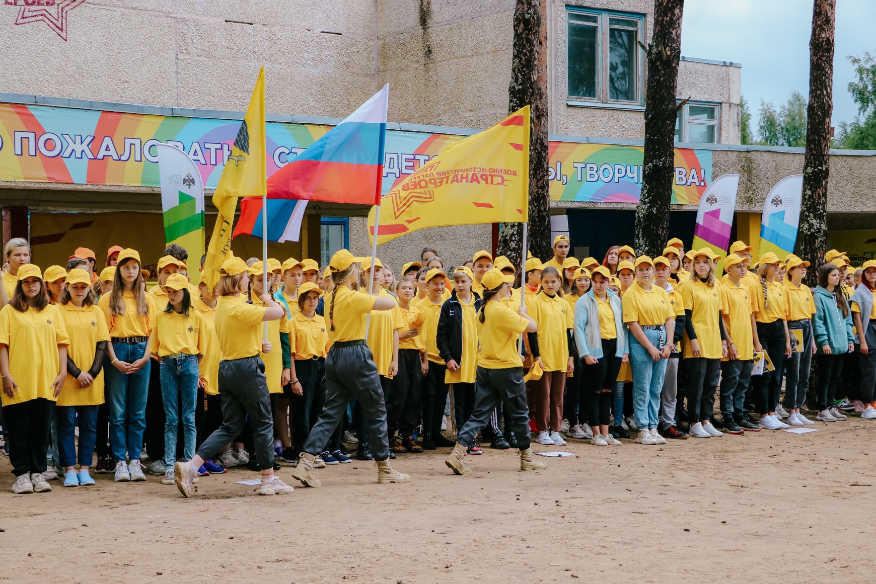 На торжественном мероприятии по случаю открытия смены участников приветствовали представители администрации лагеря, программный директор, вожатые и воспитатели. Под гимн России были внесены флаги Российской Федерации, Российского военно-исторического общества и лагеря «Страна Героев», тем самым, ознаменовав открытие смены.