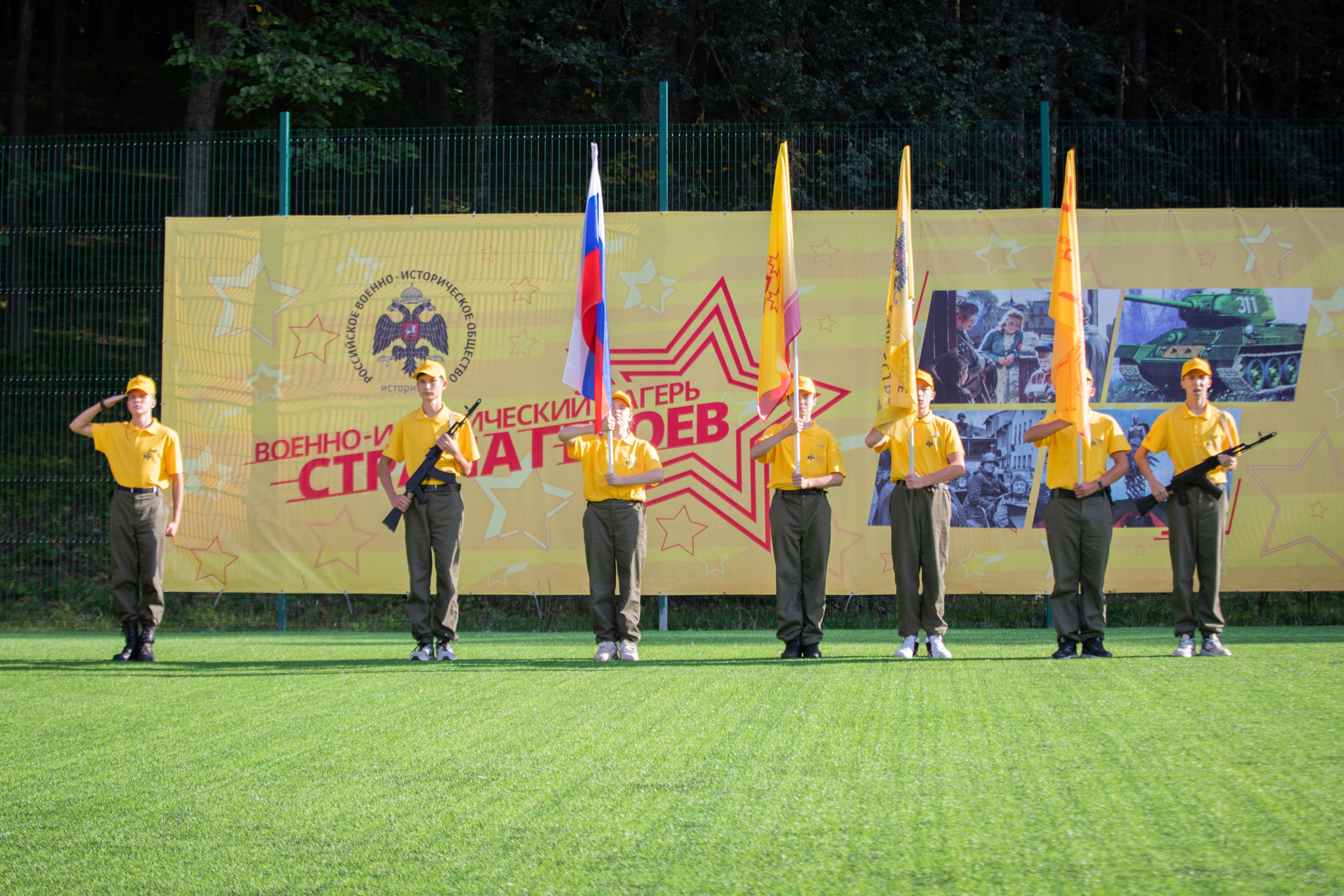 Праздничный день для ребят начался с линейки, на которой был дан старт образовательной программы «Страны Героев». Торжественную церемонию открытия украсила знаменная группа из участников лагеря, которые с гордостью внесли государственный флаг Российской Федерации, флаг РВИО и флаг военно-исторического лагеря «Страна Героев».