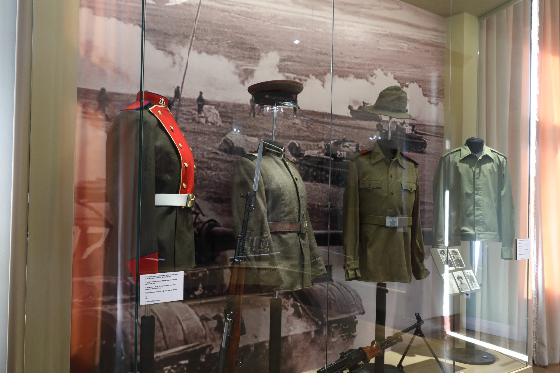 В выставочных залах представлены образцы обмундирования и снаряжения Советской Армии середины 1950-х годов, уникальные, оставшиеся в виде проектов и изготовленные в единственных экземплярах предметы экспериментальной формы одежды, а также документы, личные вещи, фото и видеоматериалы.