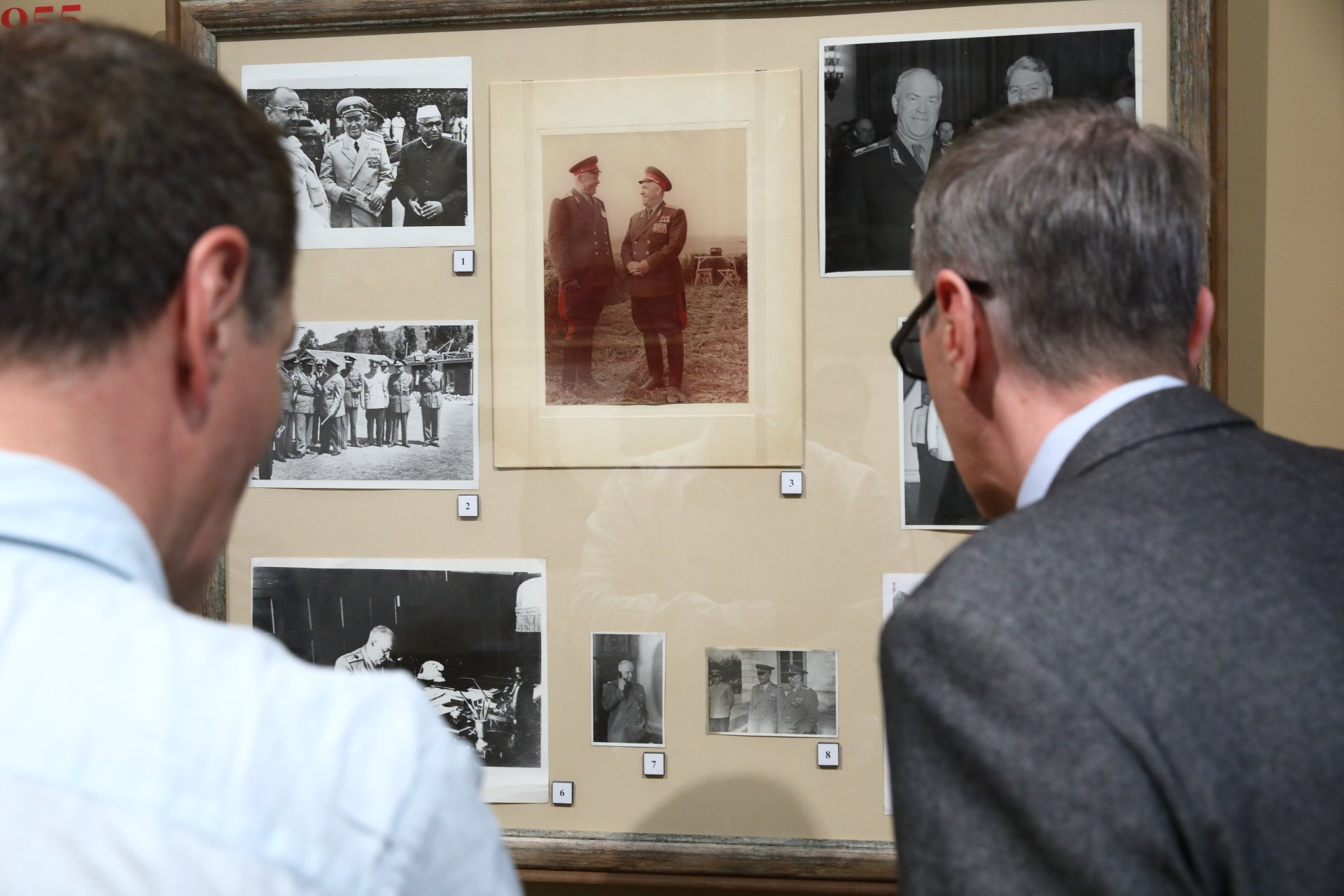 - Я недавно посетил кабинет-музей Жукова в старом здании Министерства обороны, где он работал. Там меня потрясли две вещи. В этом кабинете ожидаемо можно увидеть два бюста – Кутузова и Суворова, и два портрета. Портрет одного Верховного главнокомандующего, который сначала Жукова «вытянул», а потом отправил в опалу, портрет Иосифа Сталина. И рядом портрет второго Верховного главнокомандующего, благодаря поддержке Жукова тот удержался у власти, за что потом «расплатился» с Маршалом, отправив его на пенсию. Это Никита Сергеевич Хрущев. То есть все время Жуков работал с этими двумя портретами, он их не снимал. Это много говорит о характере человека. Революционная волна подняла наверх уникального дарования людей. Таких как Жуков, как Рокоссовский, и многих-многих других. Я очень рекомендую всем, кому небезразлична военная история, прийти на эту выставку. Другой подобной вы не увидите, она расскажет о том, как Жуков пытался реформировать армию, в том числе, военную форму, - сказал Владимир Мединский.