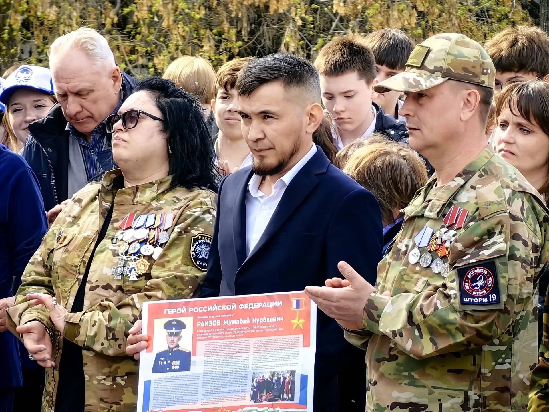 - Жумабай хорошо учился в школе, занимался спортом, мечтал о профессии военного. Легко поступил в Рязанское военно-командное училище и стал офицером. Служил в 237-м полку в Пскове, откуда и ушёл на СВО. Начинал командиром взвода, за достижения и успехи в боевых задачах его назначили командиром роты. Приятно, что в Кургане помнят Героев СВО. Сегодня замечательное памятное событие. Страна должна знать своих Героев в лицо! - сказал он.