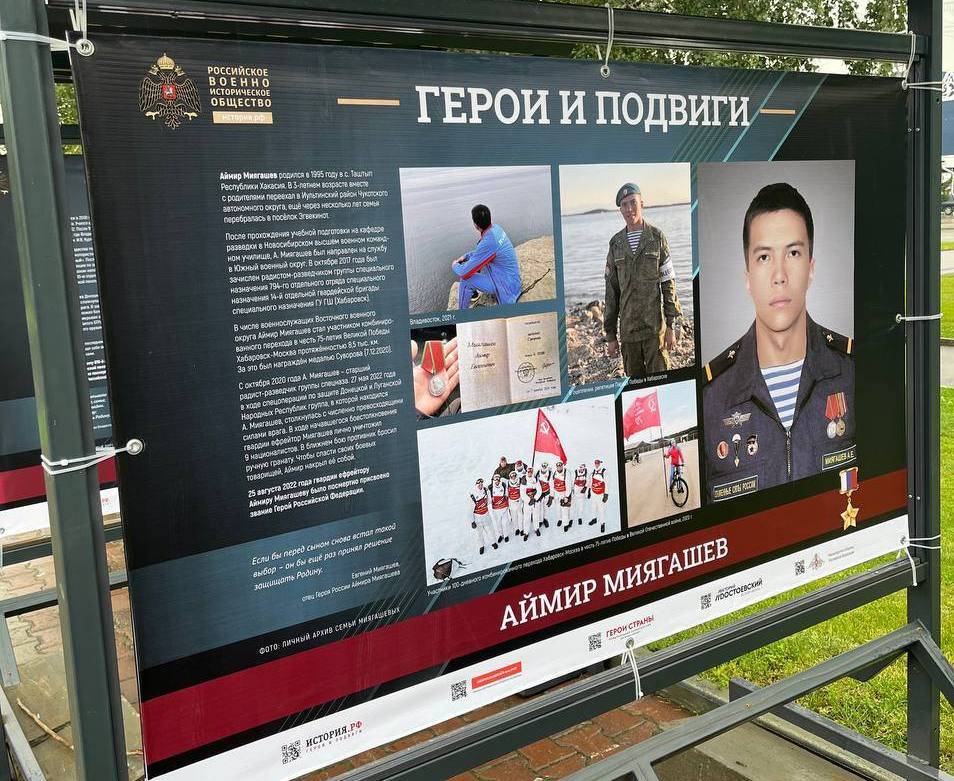 На стендах можно увидеть истории уроженцев самых разных уголков нашей страны, включая 10 Героев России, чья жизнь и служба неразрывно связаны с Алтайским краем. В их числе гвардии ефрейтор Илья Каркавин, старший матрос Олег Шипицин, старший лейтенант Роман Блинов, гвардии старший лейтенант Алексей Пащенко, гвардии младший сержант Вячеслав Мацкевич, майор Алексей Мищенко, гвардии младший лейтенант Юрий Жуланов, гвардии капитан Михаил Петелин, майор Раиль Габдрахманов, гвардии подполковник Александр Антонов.