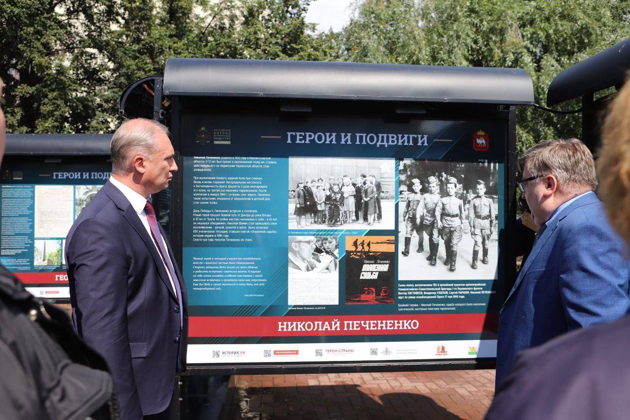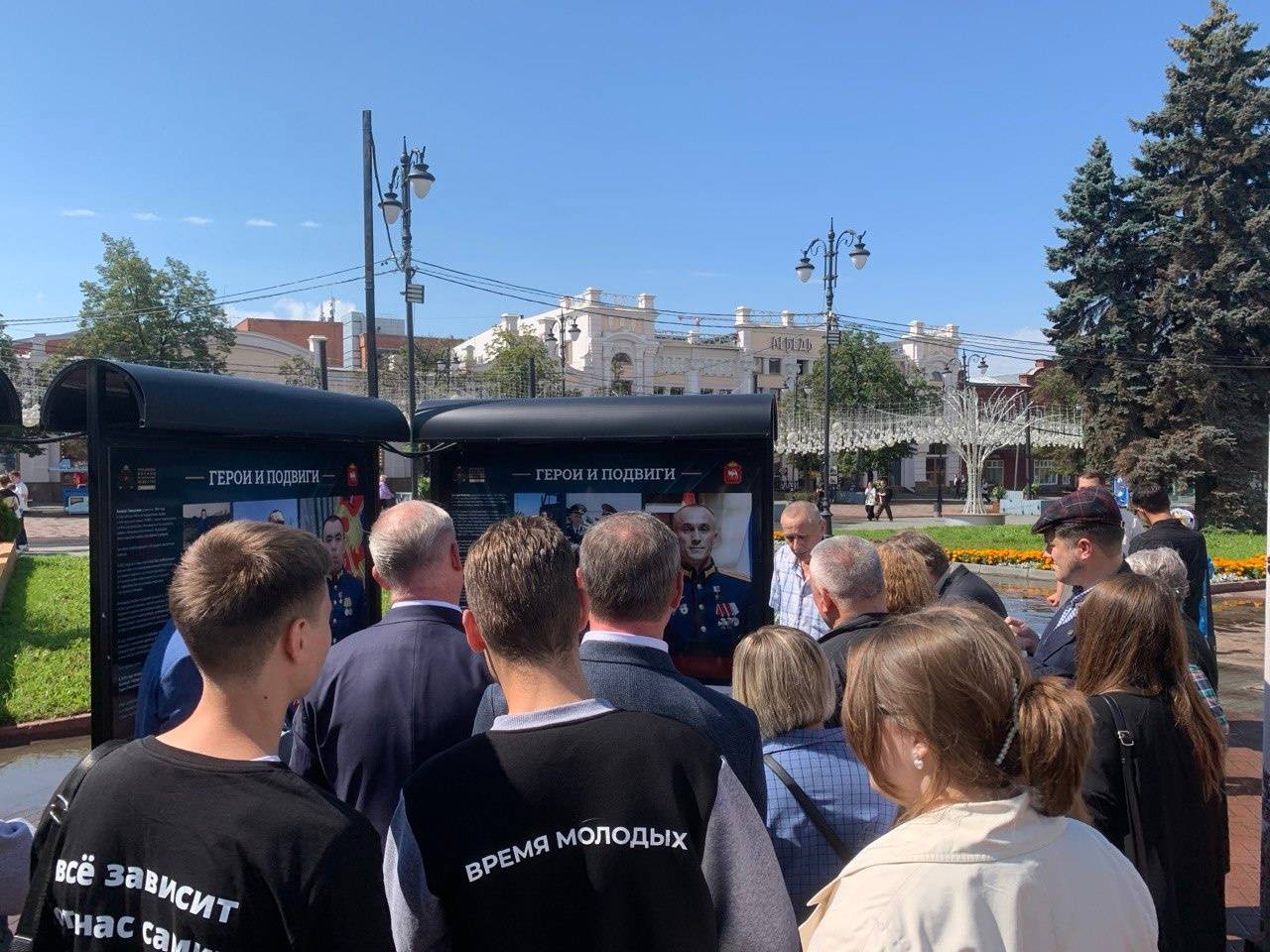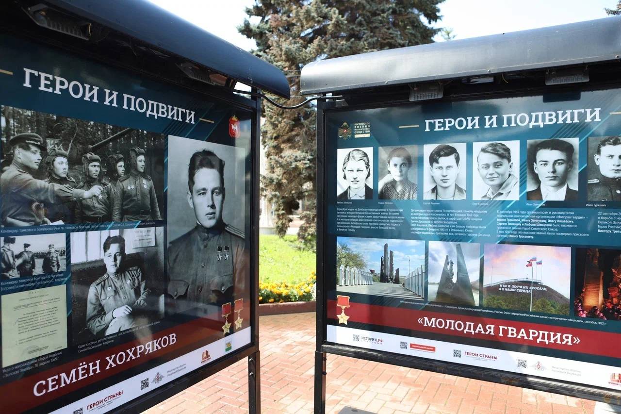 В Челябинске начала работу выставка «Герои и подвиги». Экспозиция расположена на традиционной выставочной площадке в пешеходной зоне улицы Кирова и рассказывает о подвигах 40 Героев Советского Союза и Героев России.