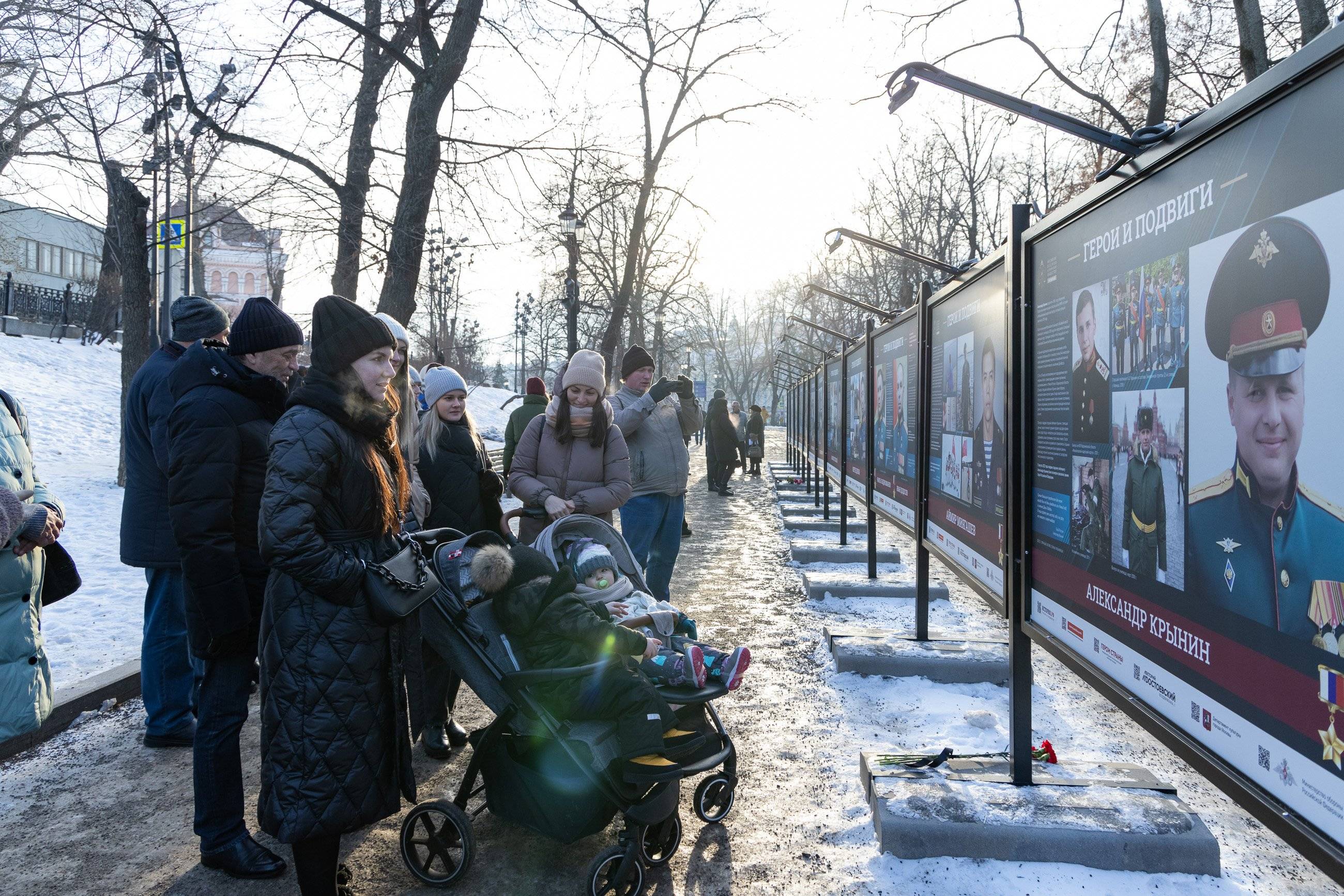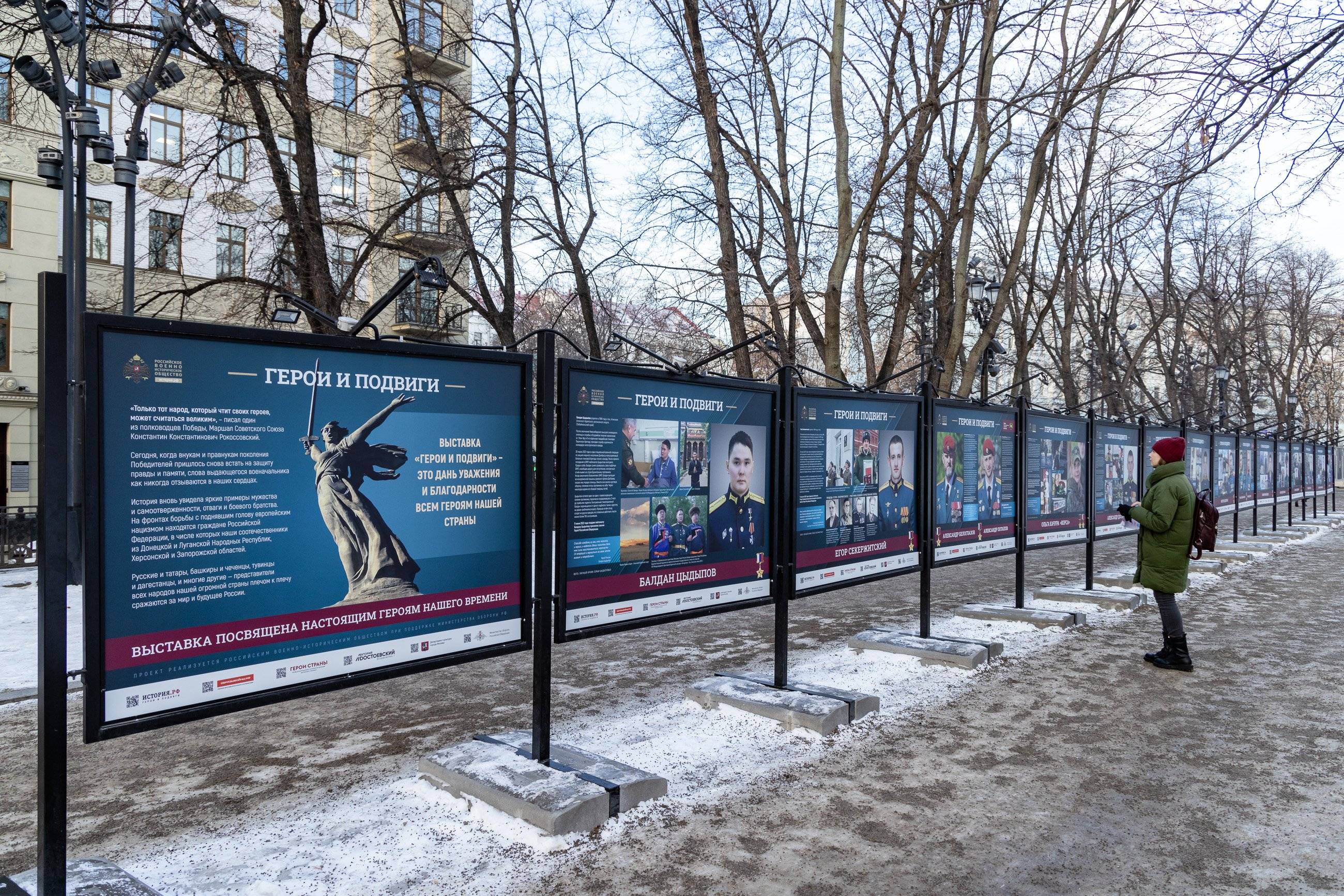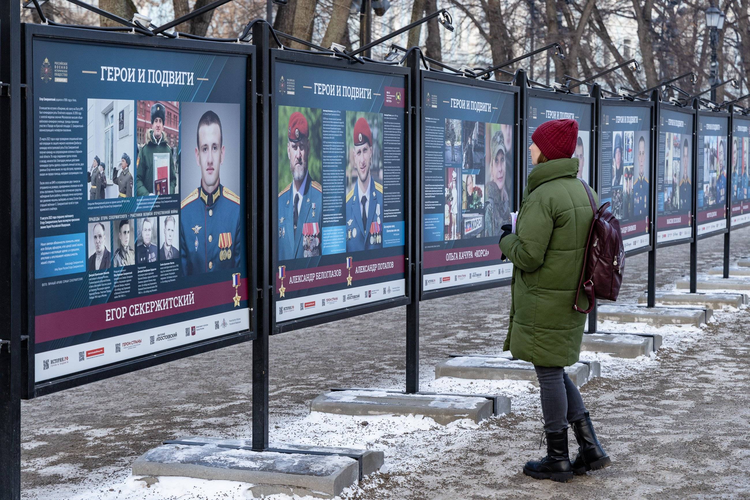 На Гоголевском бульваре в Москве продолжается работа уличной фотовыставки «ГЕРОИ И ПОДВИГИ», посвященной современным Героям – участникам Специальной военной операции. По многочисленным просьбам жителей и гостей города, срок размещения выставки продлен до конца января 2023 года.