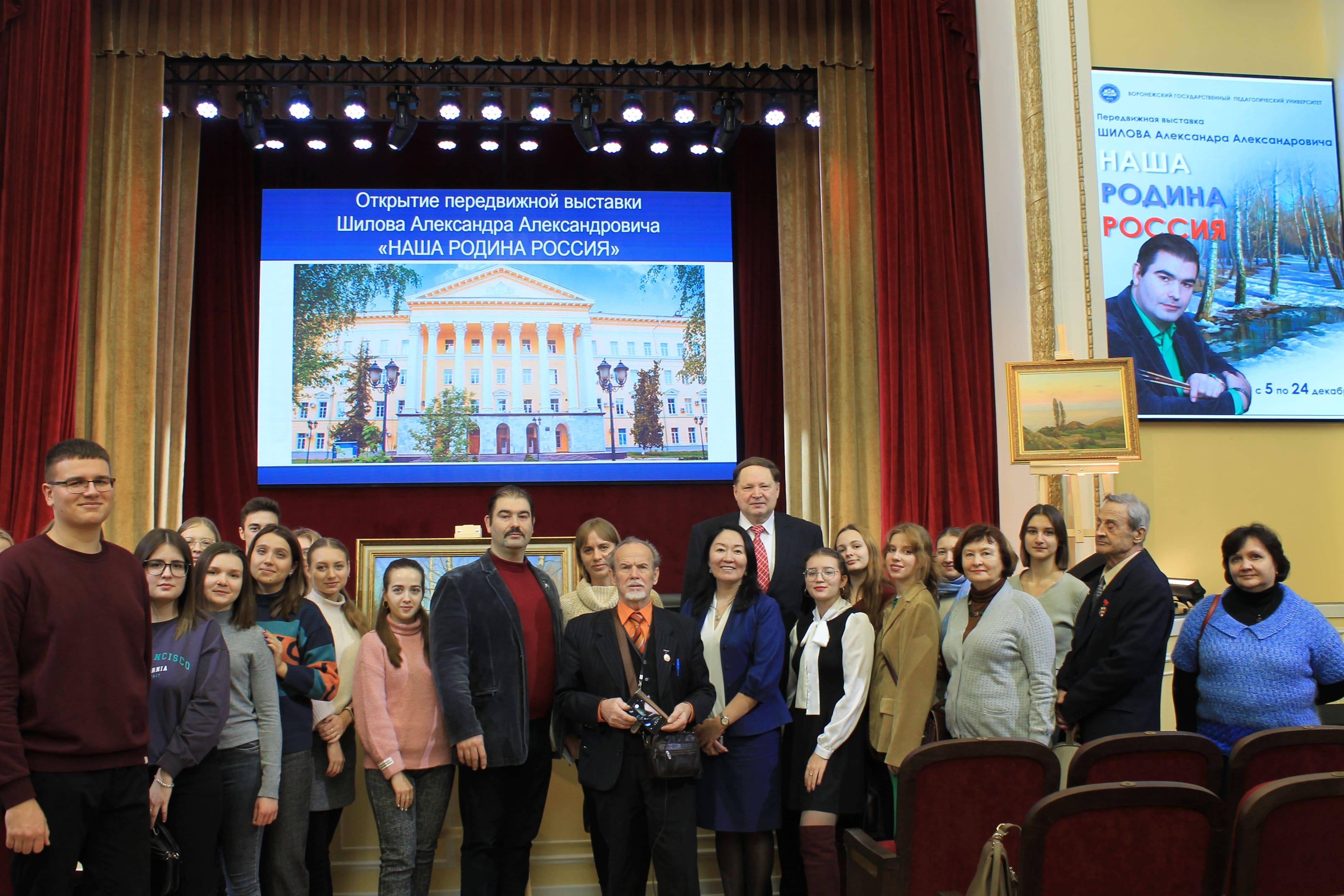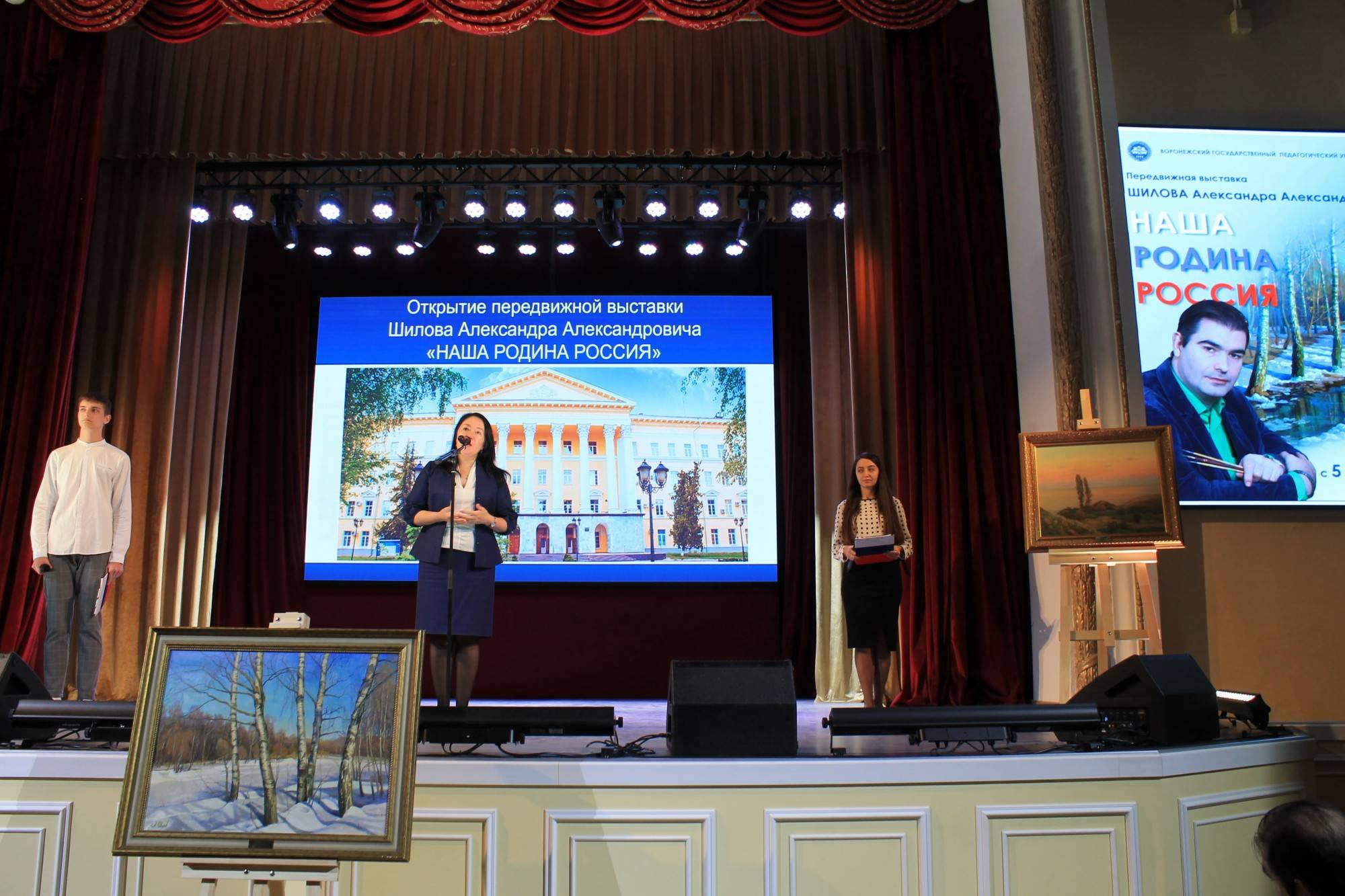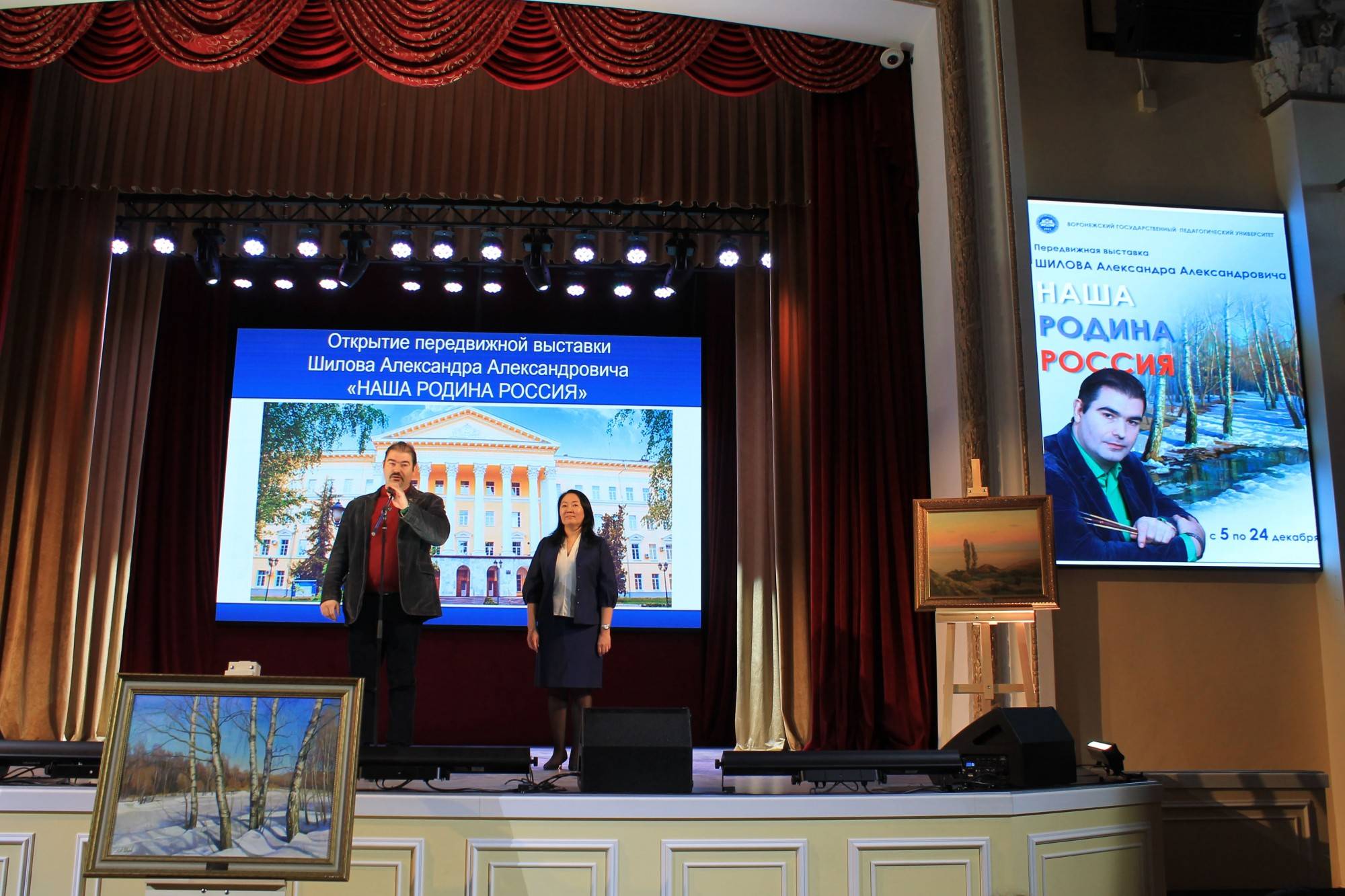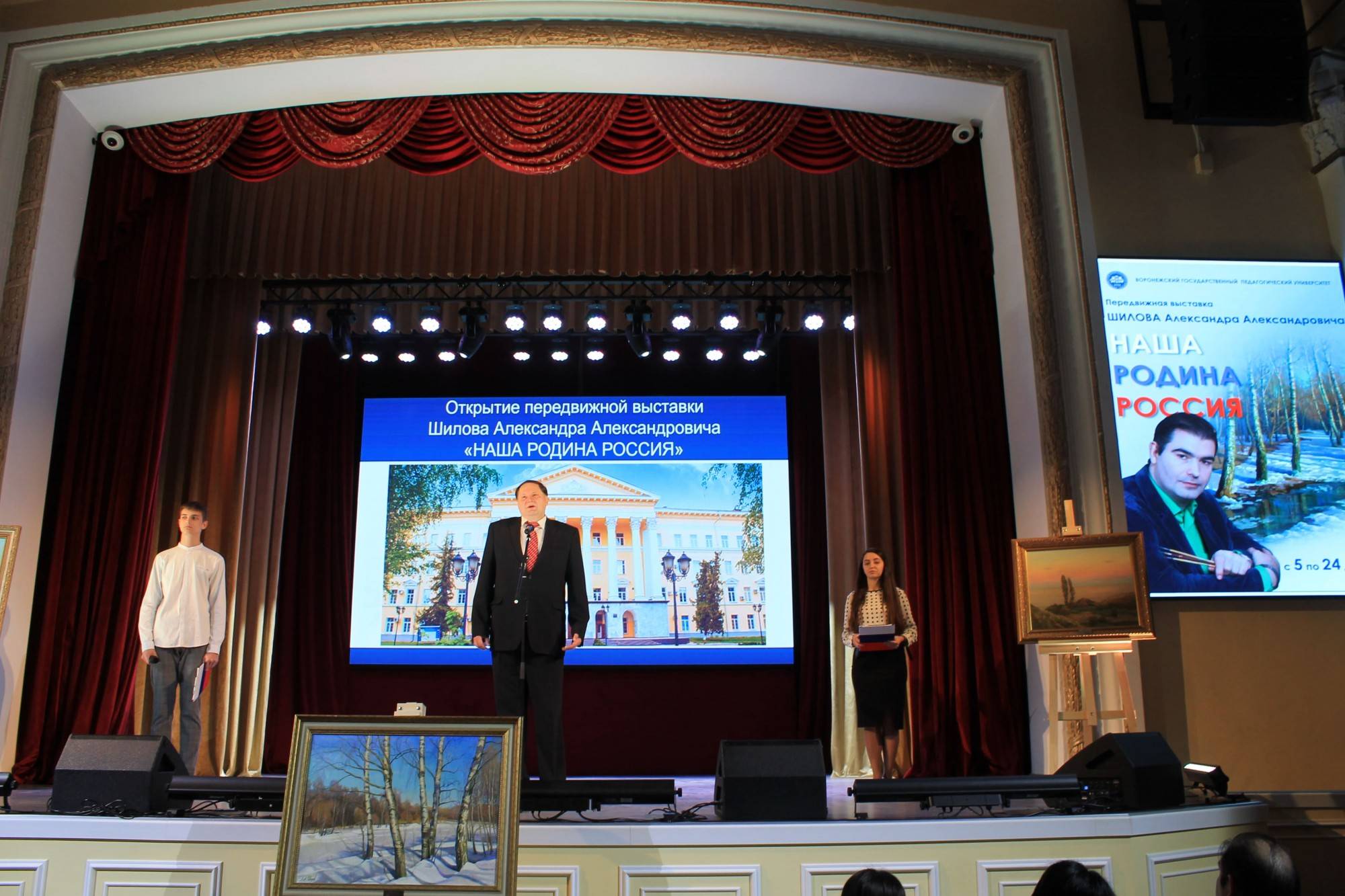 Уникальная выставка пейзажей «Наша Родина - Россия» состоит из 45 полотен и представлена в Воронеже впервые. В церемонии открытия приняли участие: художник Александр Шилов, директор Департамента Региональной политики РВИО Аяна Шойгу, Председатель Регионального отделения РВИО в Воронежской области, ректор Воронежского государственного педагогического университета Сергей Филоненко. Первыми посетителями выставки стали студенты и преподавательский состав университета.