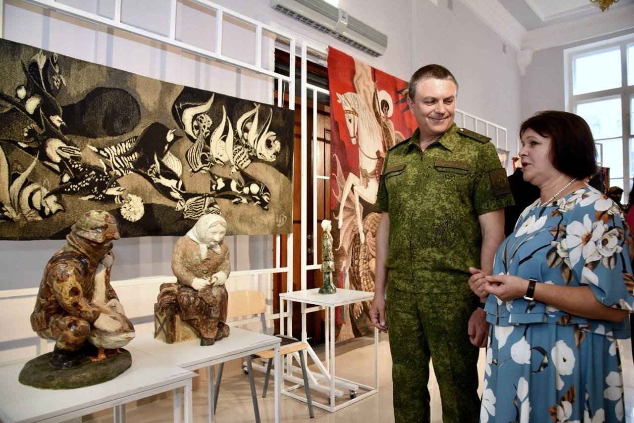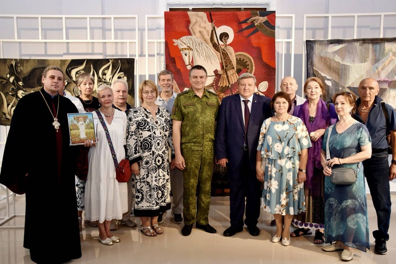 - Больше всего запомнился и поразил гобелен с изображением Святого Великомученика Георгия Победоносца, символизирующего победу добра над злом, света над тьмой. Эта работа воодушевляет. Глядя на нее, веришь, что наша победа – близко! Такие мероприятия в который раз доказывают, что Луганская Народная Республика успешно интегрируется не только в политическое и экономическое поле, но и в культурную сферу. Это очень важная работа, в том числе и для работы с молодежью. За помощь в организации выставки выражаю признательность Российскому военно-историческому обществу! – поделился Леонид Пасечник в своем Телеграм-канале.