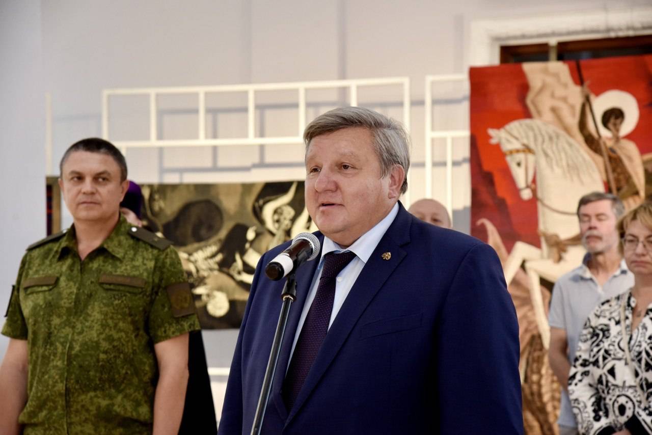 Ректор Луганской государственной академии культуры и искусств им. М.Матусовского Валерий Филиппов поблагодарил Московский союз художников и РВИО за организацию выставки. По его словам, символично, что выставка открывается именно в те дни, когда Луганщина отмечает 80-летие со дня освобождения от немецко-фашистских захватчиков.