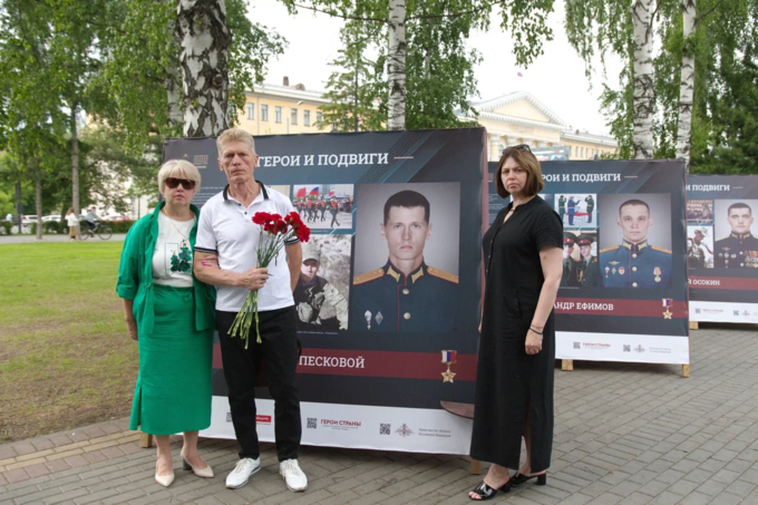 Экспозиция рассказывает истории жизни и подвига 19 Героев СВО, среди которых томич Максим Песковой. В звании старшего лейтенанта и в должности командира разведывательной роты он с первых дней участвовал в Специальной военной операции. В ходе одного из боев Максим Песковой закрыл своим телом гранату и спас сослуживцев. 5 апреля 2022 года Указом Президента России ему посмертно было присвоено звание Героя Российской Федерации.
