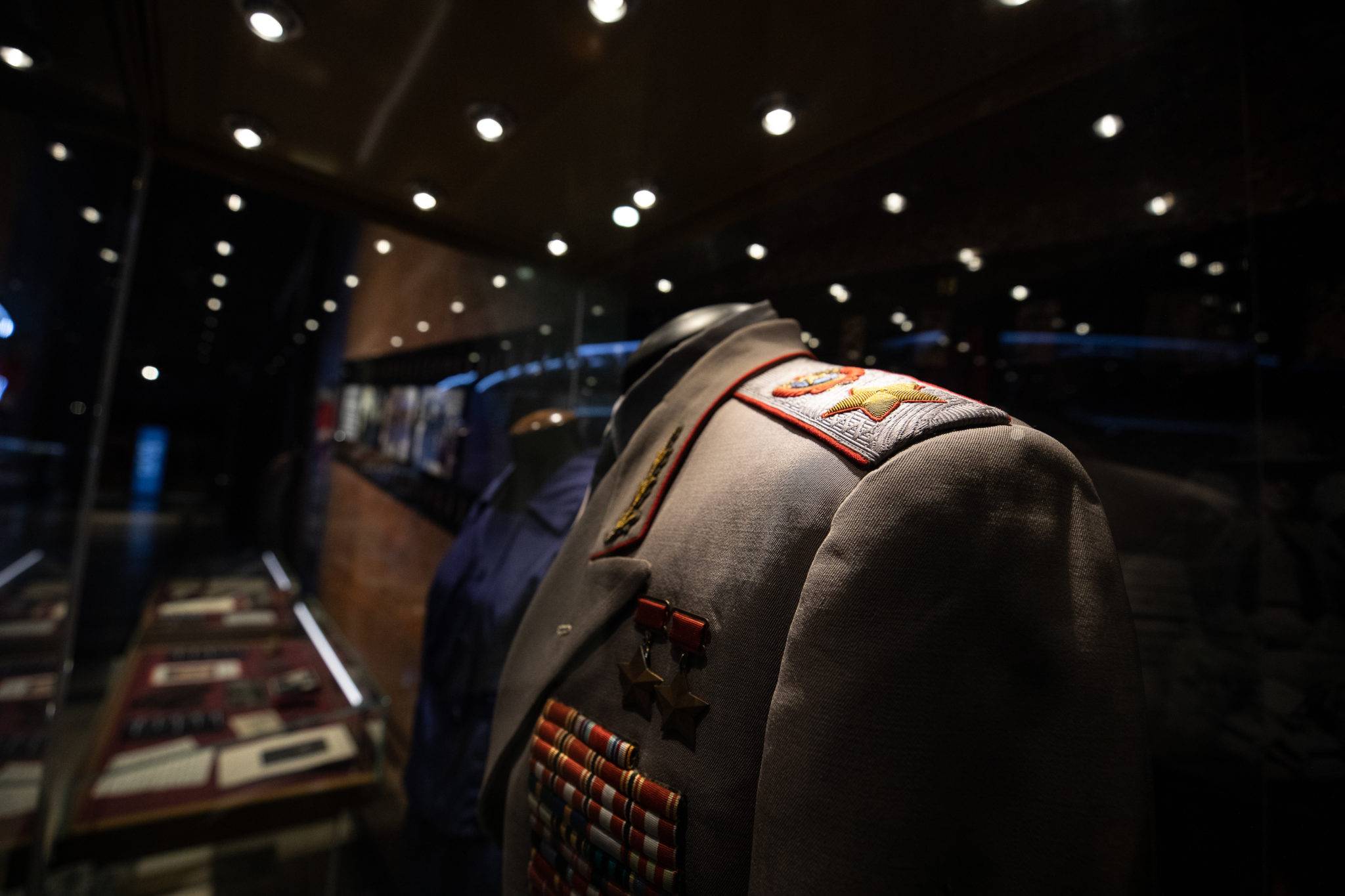 Среди уникальных реликвий - журнал "Time" от августа 1943 года, на обложке которого изображен полководец, грамота о присвоении звания Маршала Советского Союза, парадный маршальский мундир.