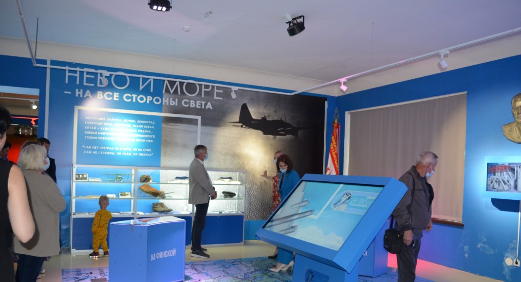 Посетители музея могут увидеть фотоматериалы и копии рассекреченных документов об истории 1-го минно-торпедного авиационного полка военно-воздушных сил Краснознаменного Балтийского флота, во главе которого с начала войны и до августа 1942 года стоял уроженец Кирилловского района полковник Евгений Преображенский.