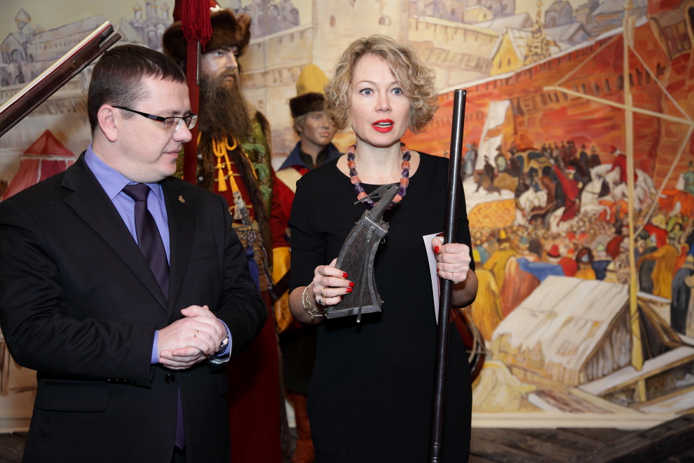 - Нами было принято решение, что экспозицию необходимо дополнить оригинальными вещами, помимо мультимедийной и реконструкторской составляющей. Позвольте, от имени Министра культуры РФ, Председателя РВИО Владимира Ростиславовича Мединского, передать вам уникальные экспонаты на вечное хранение в музей «Стрелецкие палаты». Это оригинальный ствол мушкета начала XVII века западноевропейского производства и порохвница начала XVII века западноевропейского производства – сказал член Центрального Совета РВИО, Советник Министра культуры РФ, директор ГОСНИИР Дмитрий Антонов.
