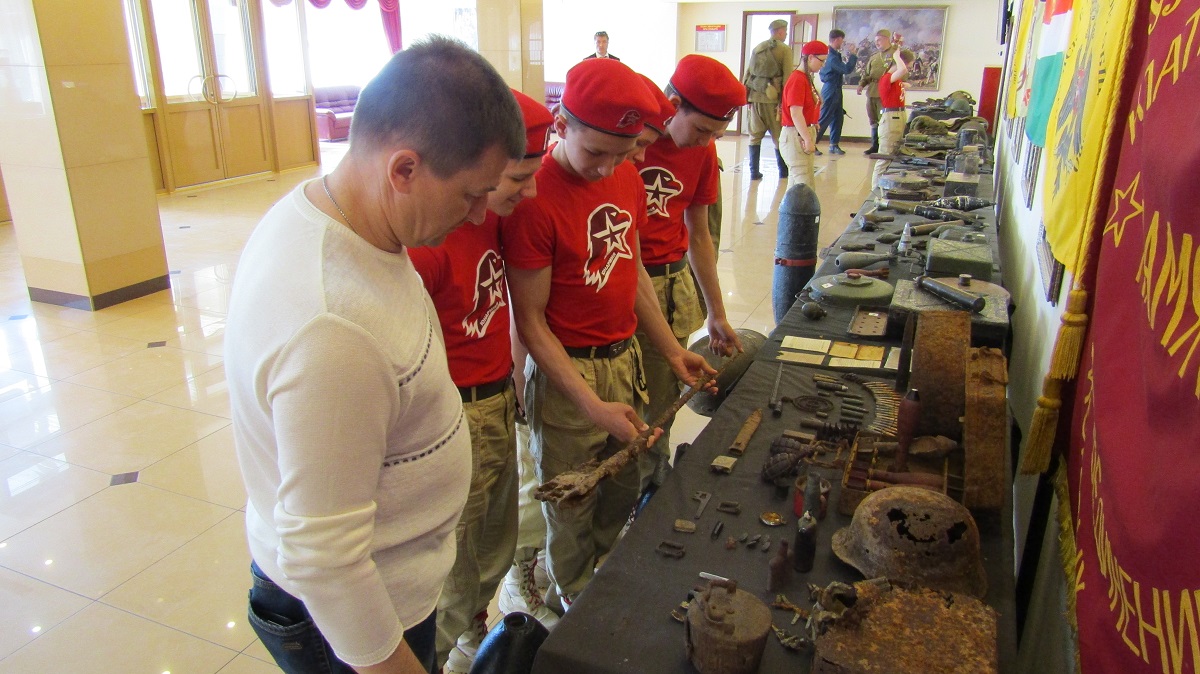 Военно-археологическая выставка для школьников организована РВИО на территории воинской части Росгвардии в Калуге. Экспозиция представляет находки поисковых экспедиций на местах боев Великой Отечественной войны.
