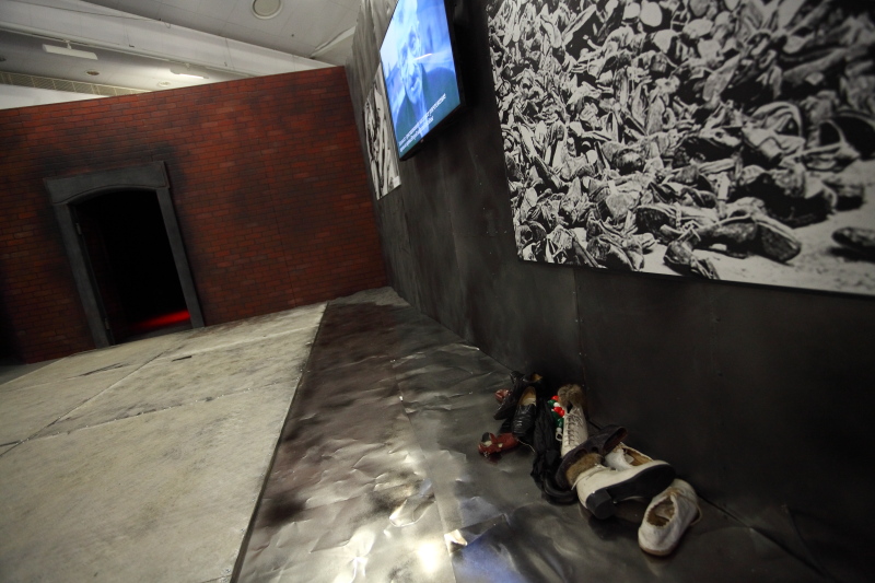 Экспозиция — коллективный авторский продукт народных художников России Василия Нестеренко и Салавата Щербакова. Выставка представлена в нескольких тематических зонах: «Приход к власти фашистов», «Массовые репрессии», «Нацизм в силе», «Массовое истребление людей», «Освобождение мира от коричневой чумы», «Победа». По словам Василия Нестеренко, концепция выставки заключается в представлении трех сторон трагедии: преступника-нациста, жертвы нациста и советского солдата-освободителя.