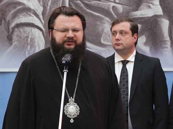 - Эти экспозиции - свидетельство нашей с вами благодарности защитникам Отечества накануне 70-летия Победы, которое мы отмечаем в этом году, - обратился к собравшимся епископ Исидор. - Это свидетельство необходимости памяти о тех великих героях, благодаря которым мы живем в мирное время. Поэтому пользуясь возможностью выступить на этой высокой площадке я передаю ветеранам и детям Великой Отечественной войны низкий поклон и высокие слова благодарности за тот великий подвиг, который совершили наши отцы и деды, защищавшие наше Отечество. Считаю своим долгом всем нам напомнить о необходимости вечной памяти павших героев Великой Отечественной войны!