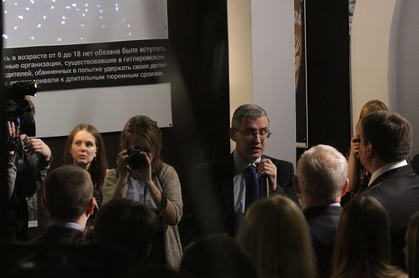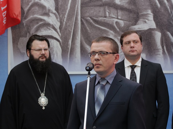 Слова приветствия от Председателя Российского военно-исторического общества, Министра культуры России Владимира Мединского на открытии выставки смолянам передал руководитель департамента информационной политики РВИО Владислав Кононов.