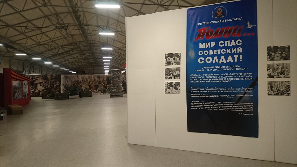 Мультимедийная выставка «Помни… Мир спас Советский солдат» создана Российским военно-историческим обществом. Она посвящена подлинному рассказу о преступлениях нацизма и освободительной миссии Красной Армии в Европе. Экспонировалась в Москве, Смоленске, Сочи, Воронеже, Волгограде, Кургане, Омске, Новосибирске, Томске, Керчи, странах Европы. С момента создания в 2015-2016 годы ее посетило почти 2 миллиона человек. - Выставка эта необычна, она комбинирует мультимедийную составляющую и уникальные музейные экспонаты. Мы хотим напомнить нашим соотечественникам и рассказать молодежи, какую цену за победу заплатила наша страна и что было бы у нас, если бы победил германский фашизм, и как на самом деле происходило освобождение Европы, - сказал ранее Министр культуры Российской Федерации, Председатель РВИО Владимир Мединский.