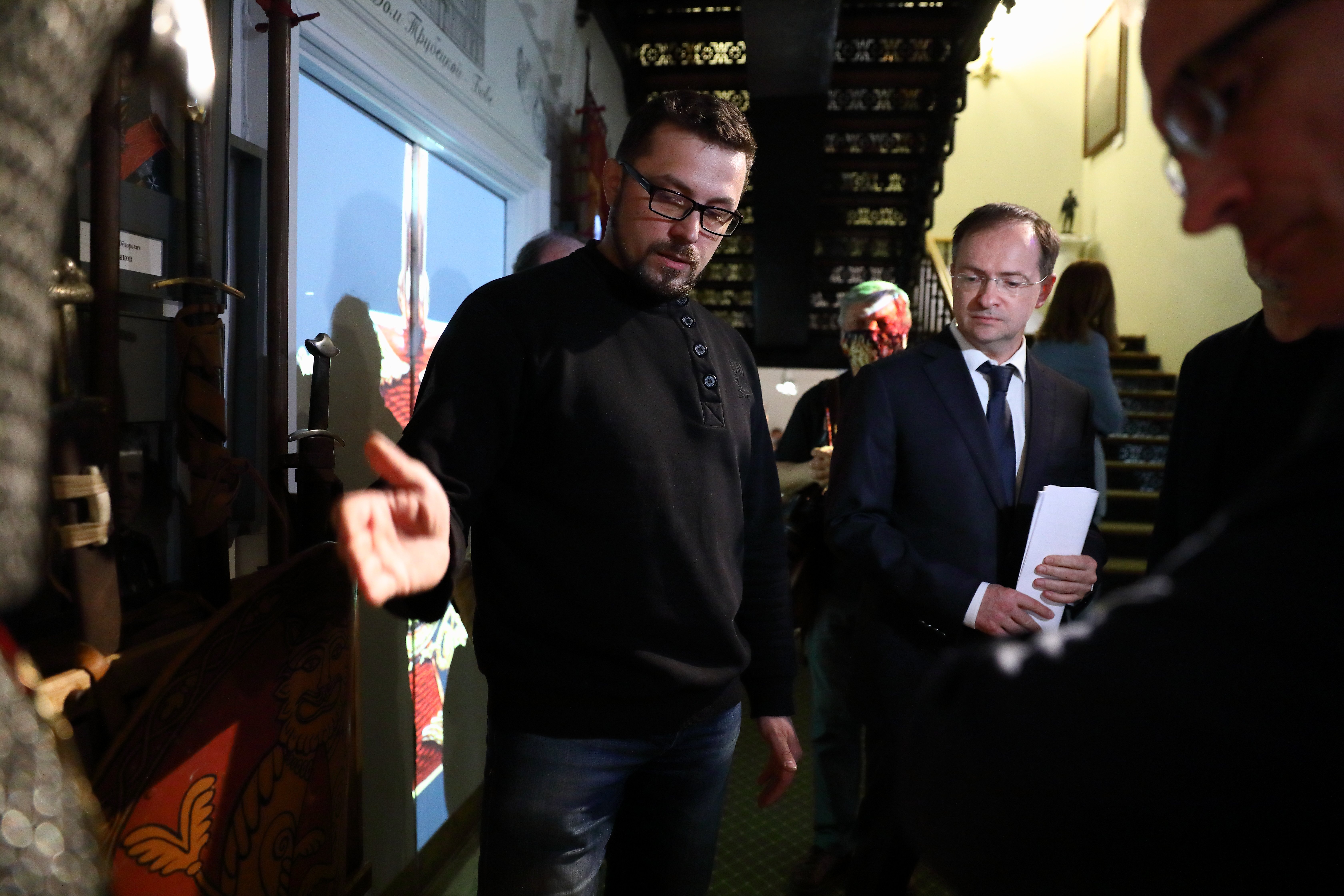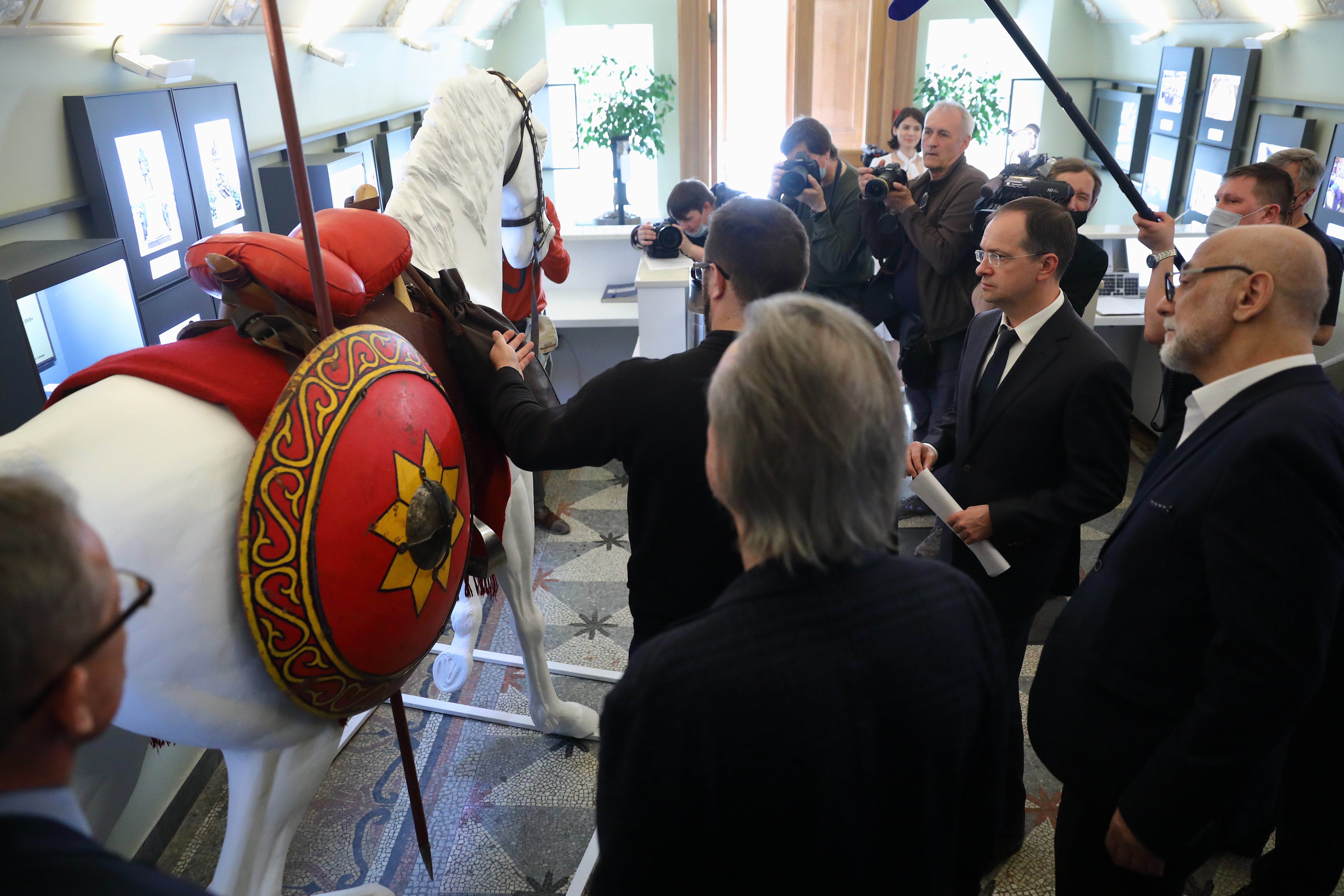 - К деяниям князя Александра Невского наш народ обращался в переломные годы истории, - будь то Северная война, Первая мировая, а потом Великая Отечественная война. В каждый период времени мы находили в его жизни и судьбе что-то особенное, то, к чему надо стремиться и что нужно сохранить. Неслучайно в 1938 году, когда на экраны страны вышел знаменитый фильм Сергея Эйзенштейна «Александр Невский», он сразу, как сказали бы сейчас, стал лидером проката. Фильм показывал, что враги-захватчики ХХ века в лице нацистов имеют исторические корни в немецких рыцарях века XIII-го, - сказал Помощник Президента РФ, Председатель РВИО Владимир Мединский, открывая мероприятие.