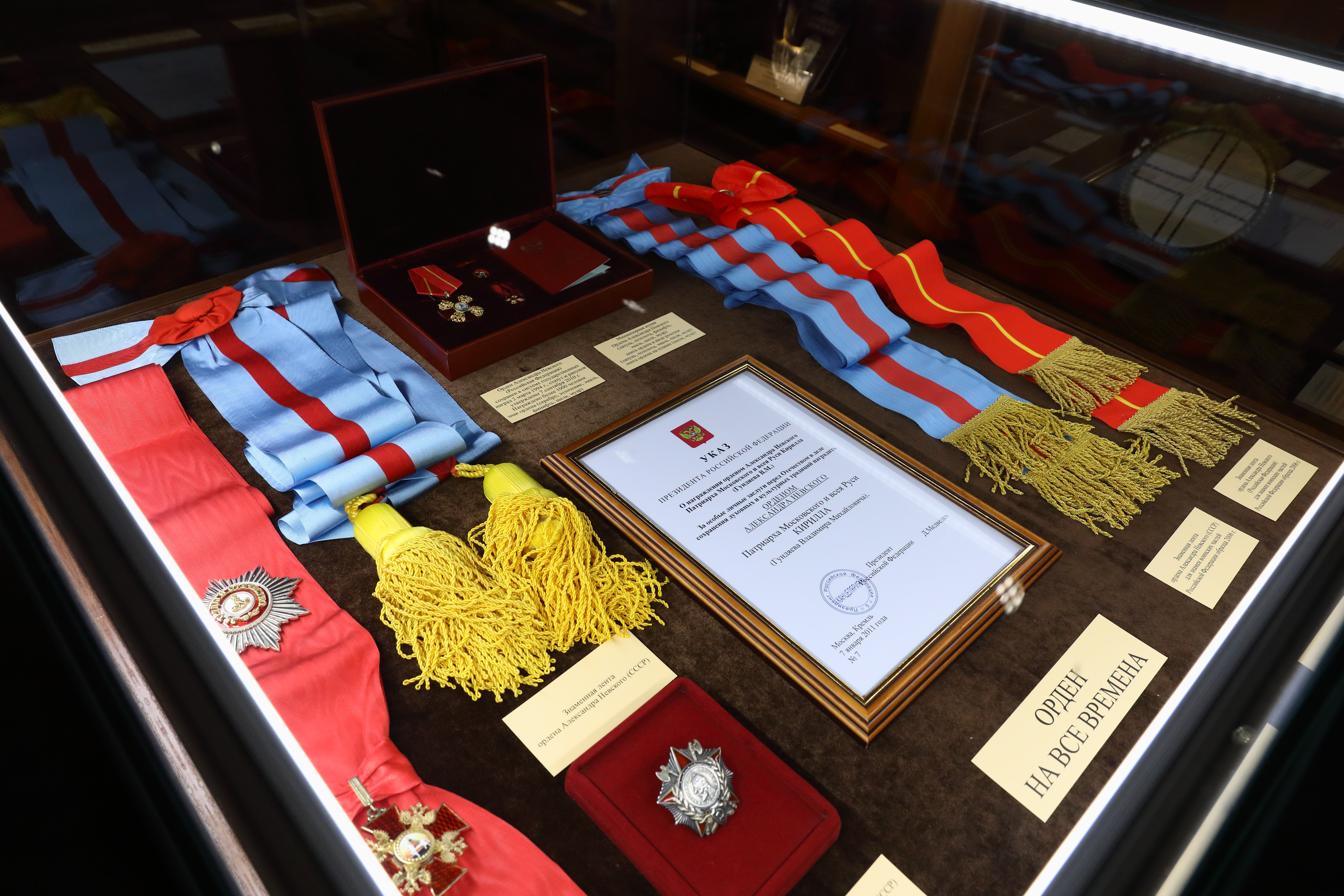 На выставке также представлены образцы орденов, названных в честь Александра Невского, периода Российской империи, СССР и современной России. В оформлении выставочного пространства использованы копии проектов памятника Александру Невскому, представленные в РВИО на конкурс для установки мемориалов в Ленинградской и Псковской областях.