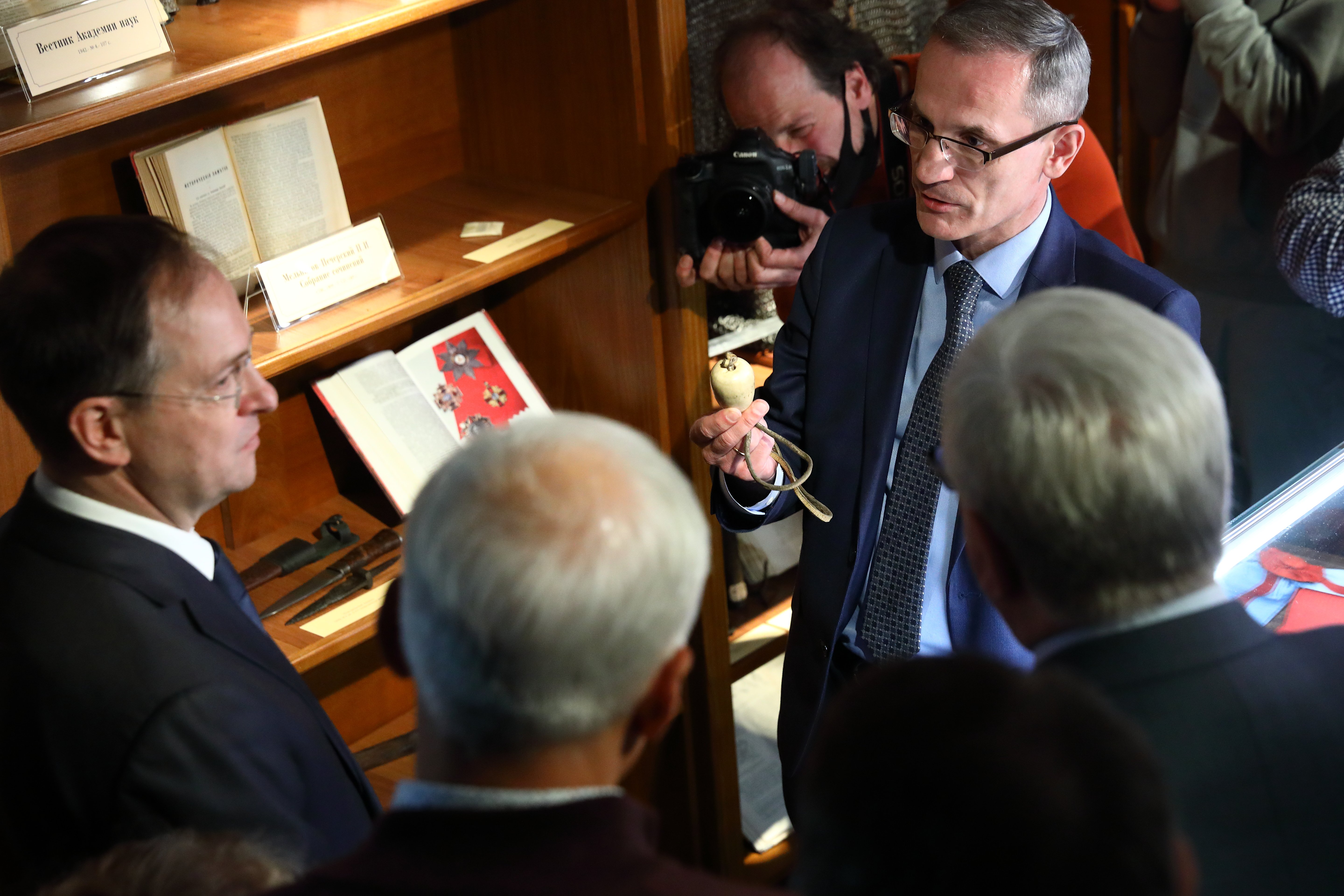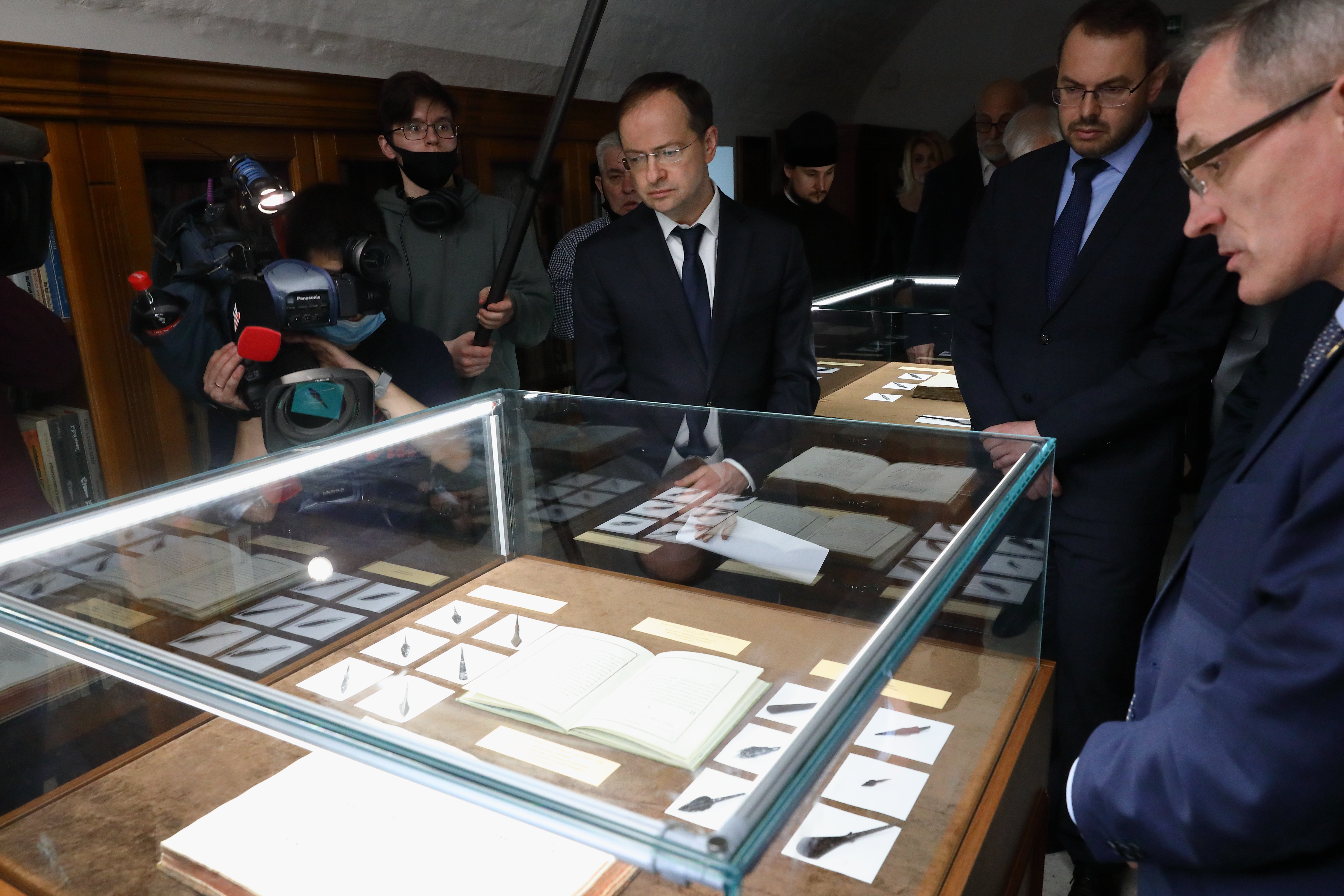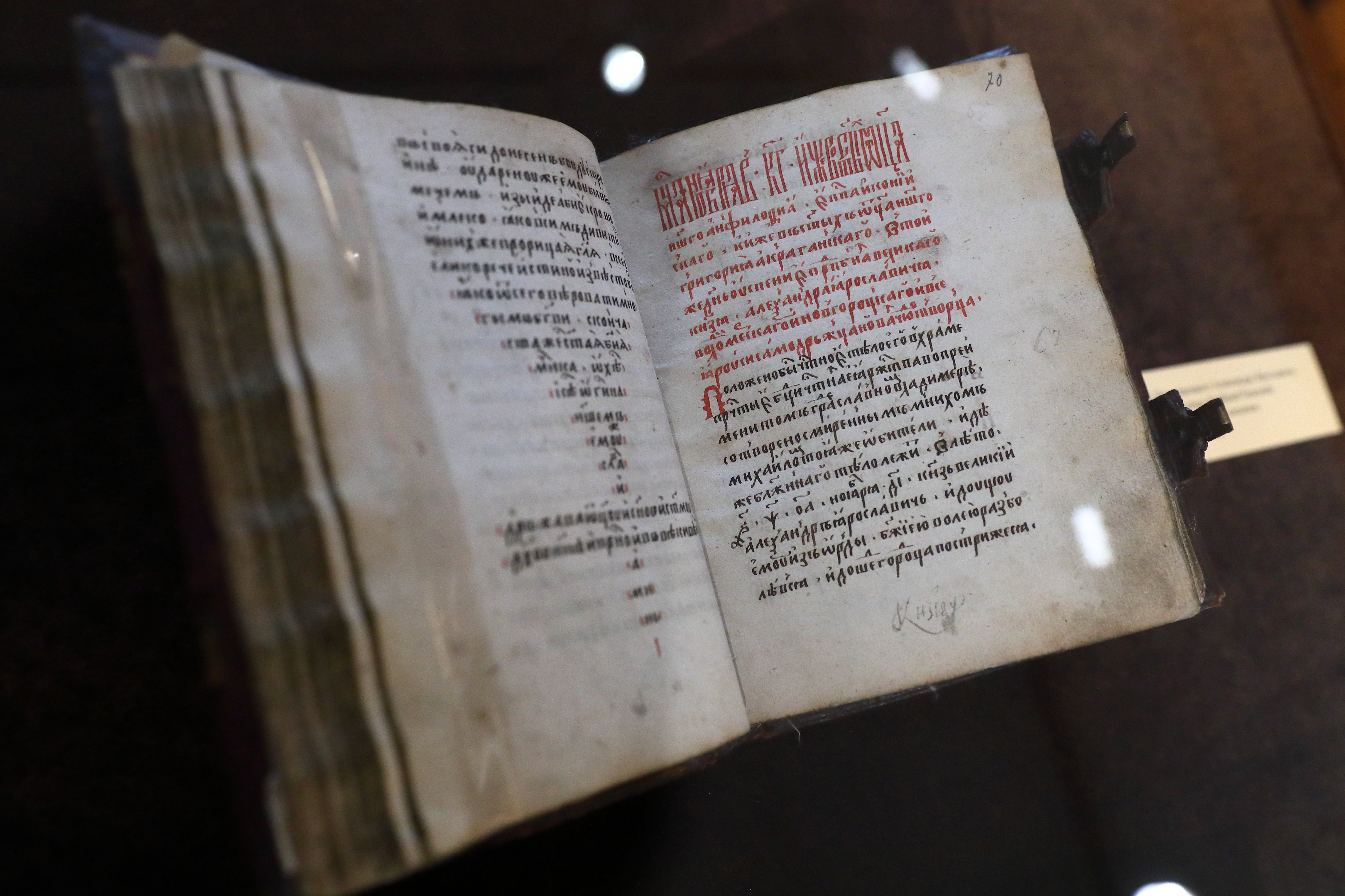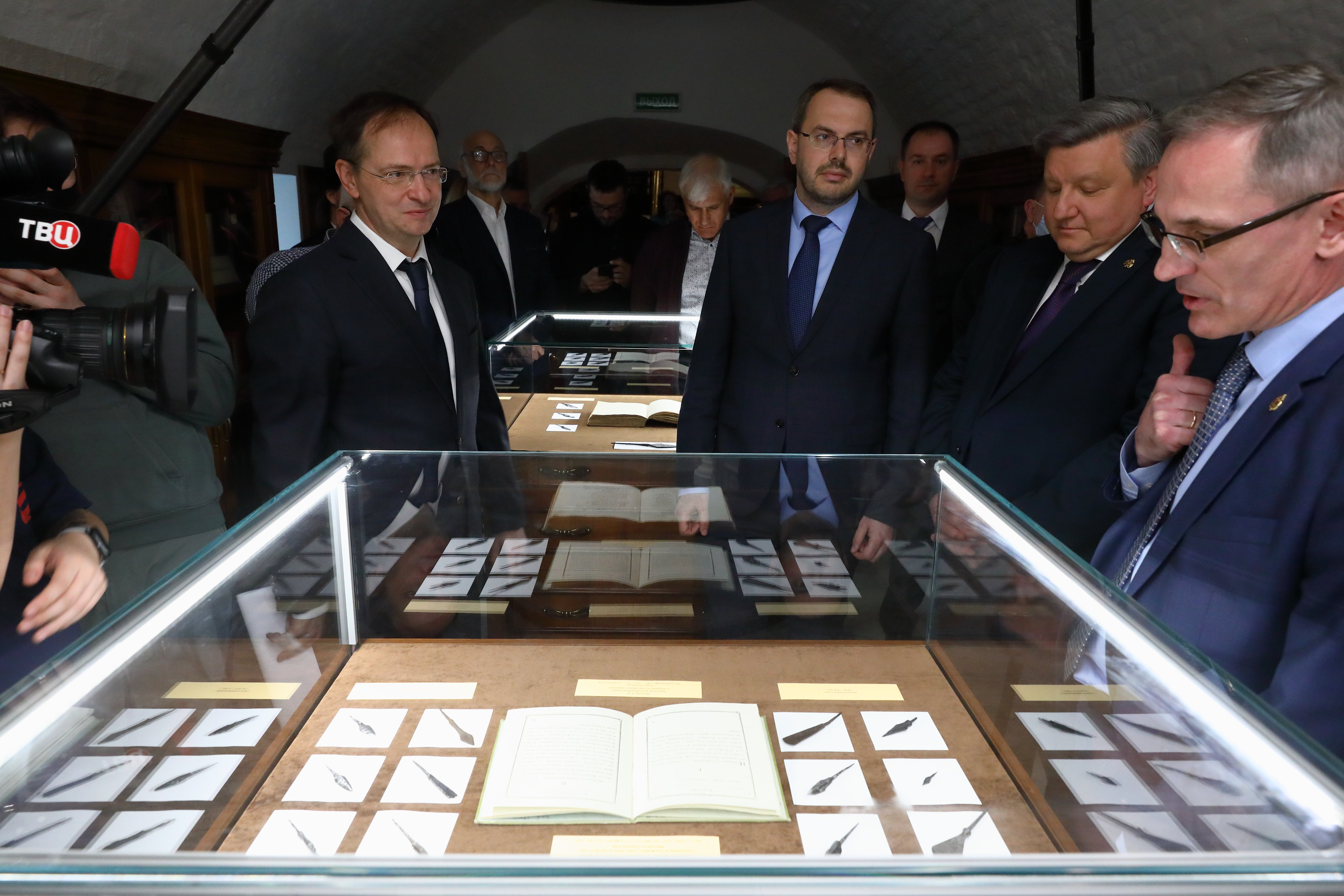 - Никогда эта книга не покидала стен нашей библиотеки. Сегодня уникальное событие, впервые она будет на выставке. Еще несколько книг, которые мы предоставили для этой выставки, посвящены периоду Первой мировой войны. Отдельно хотелось бы сказать об изданиях времен Второй мировой войны. Всего в фондах «Ленинки» есть 22 издания, посвященных Александру Невскому. Это скромно оформленные книги на серо-желтой бумаге, но их совокупный тираж примерно полтора миллиона экземпляров, - сказал генеральный директор Российской государственной библиотеки Вадим Дуда.