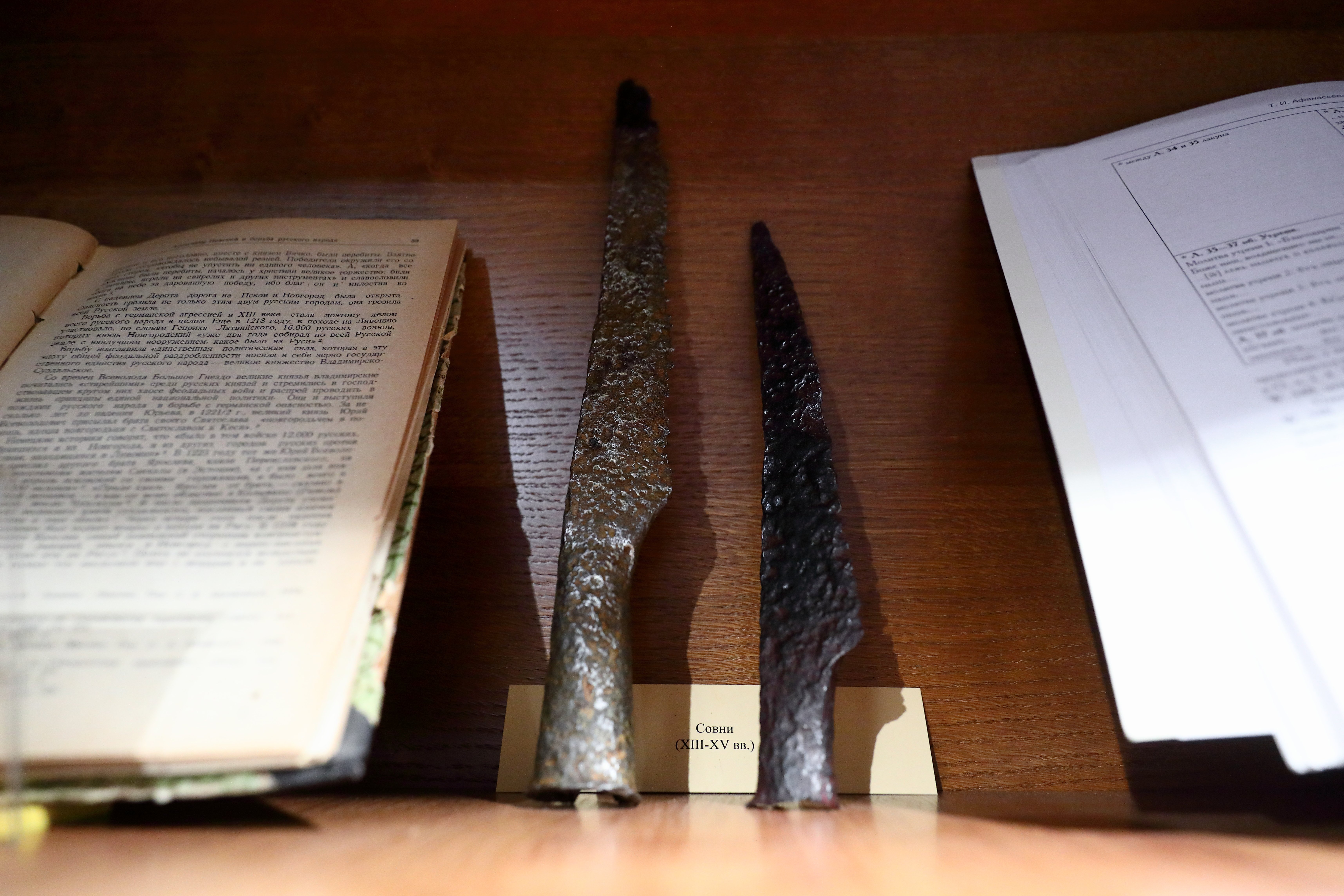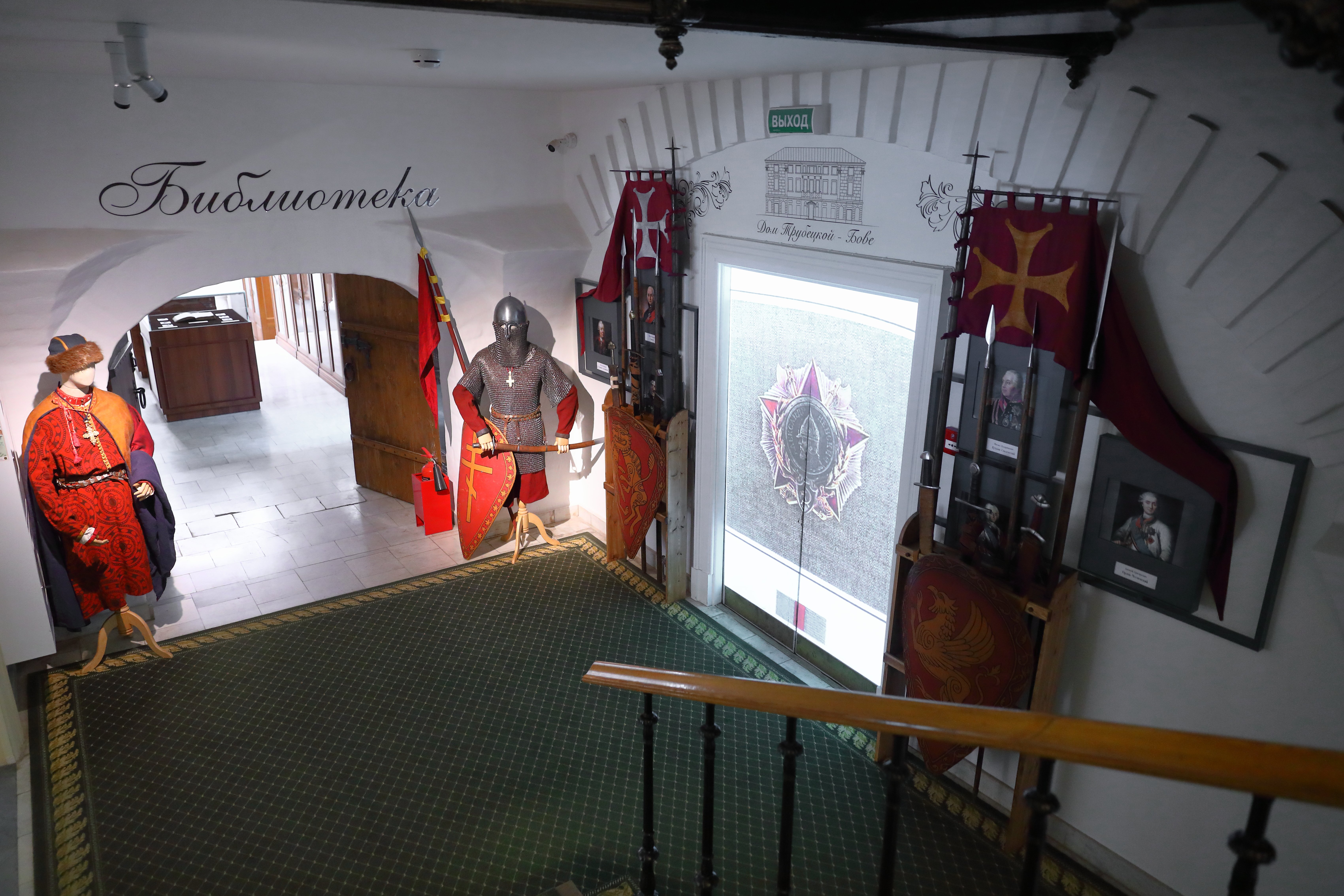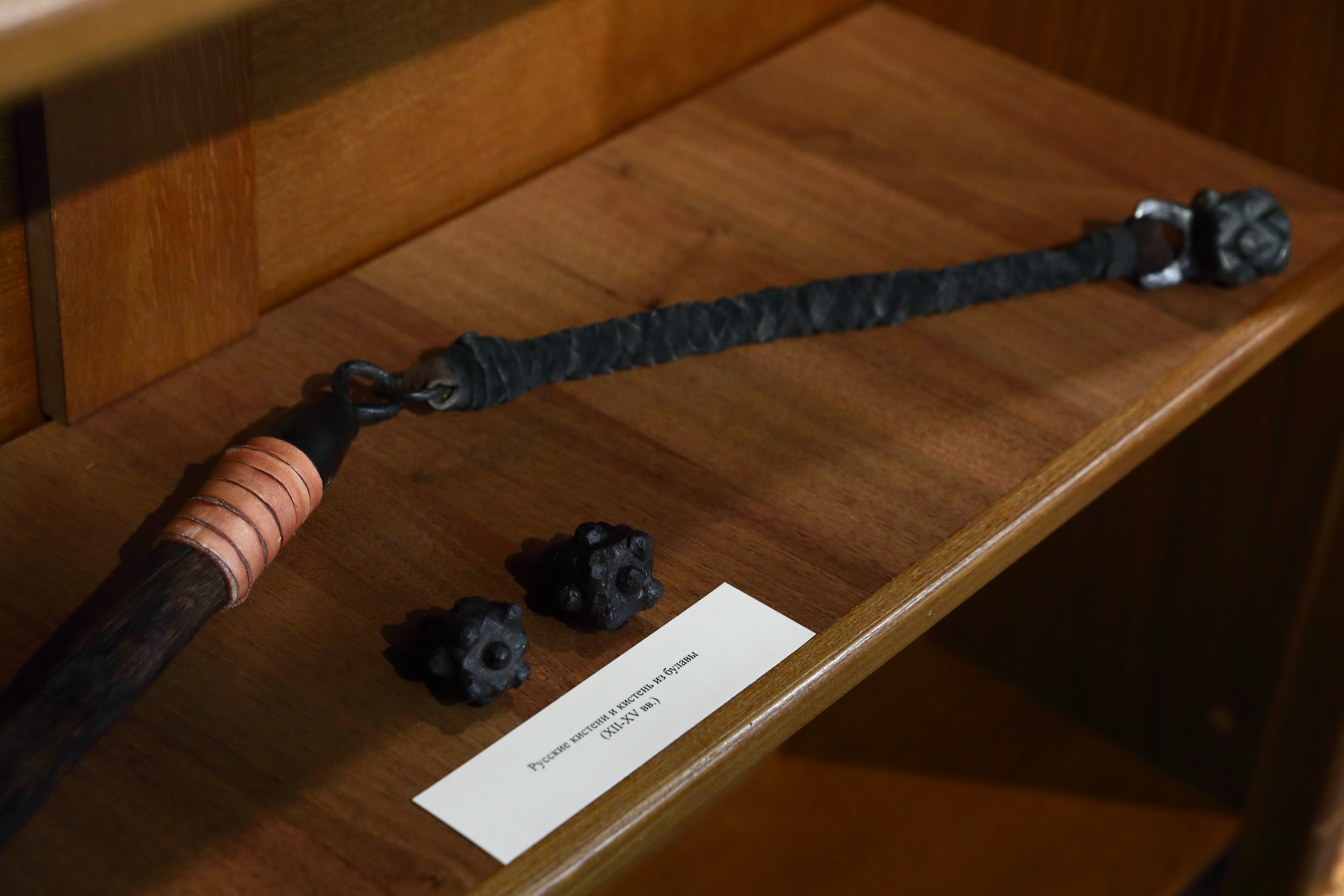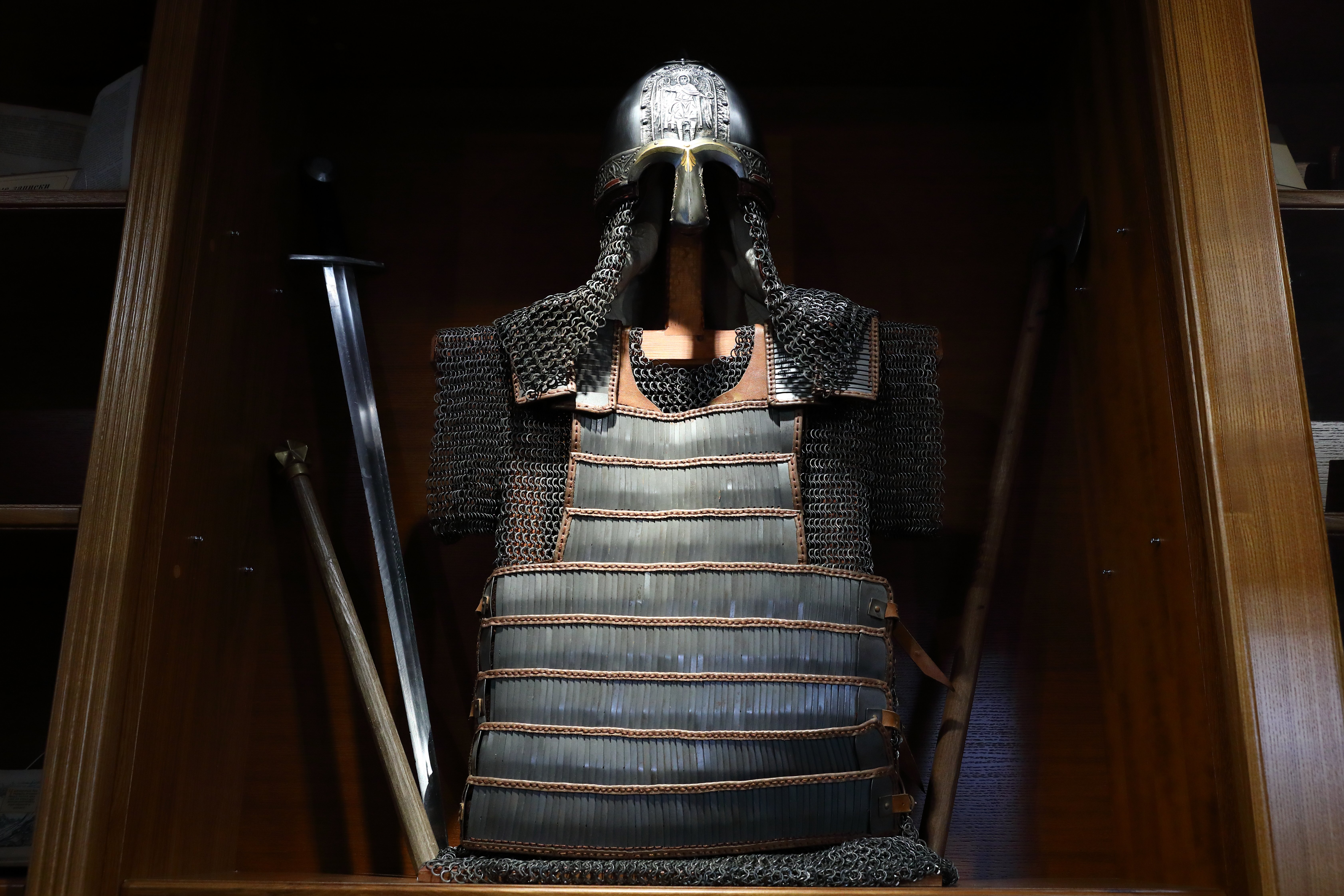 Погружение в эпоху обеспечили полноразмерные модели средневековых воинов, одетые в реплики доспехов XIII века, подлинные образцы оружия и предметы воинской экипировки времен Александра Невского. Центральное место в этом ряду экспонатов заняла точная копия оригинального шлема отца Александра Невского - великого князя Ярослава Всеволодовича. Долгие годы шлем воспринимался как часть экипировки самого Александра, что нашло отражение в фильме Сергея Эйзенштейна.