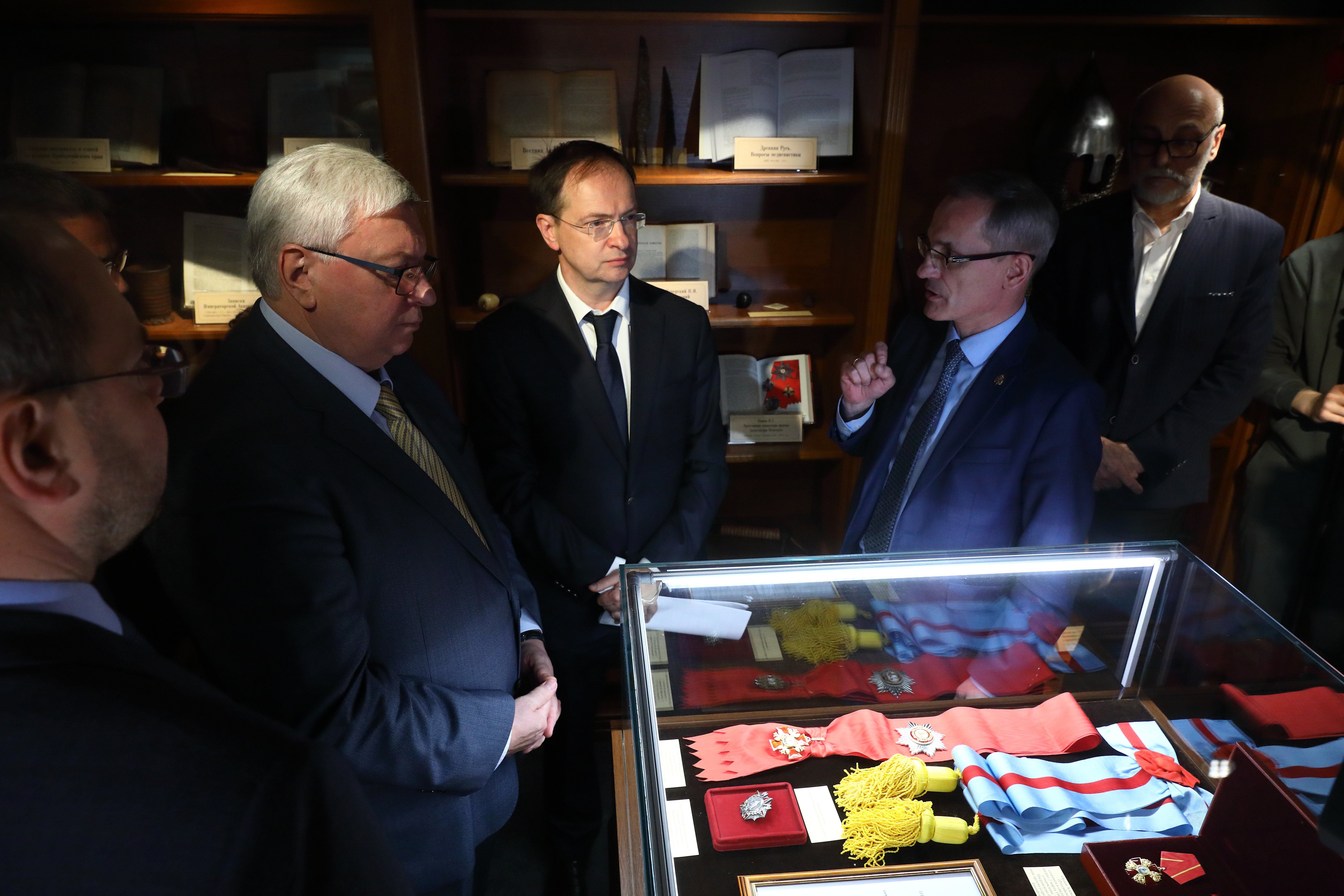 - На сегодняшний момент это единственный орден России, который существовал и в Российской Империи, и в Советском Союзе, и в современной России. Первым орденом был награжден командир батальона морской пехоты старший лейтенант Иван Рубан. Он разделил свой батальон на несколько частей, заманил немцев в окружение вместе с танками, и уничтожил целый немецкий полк, - отметил Владимир Мединский.