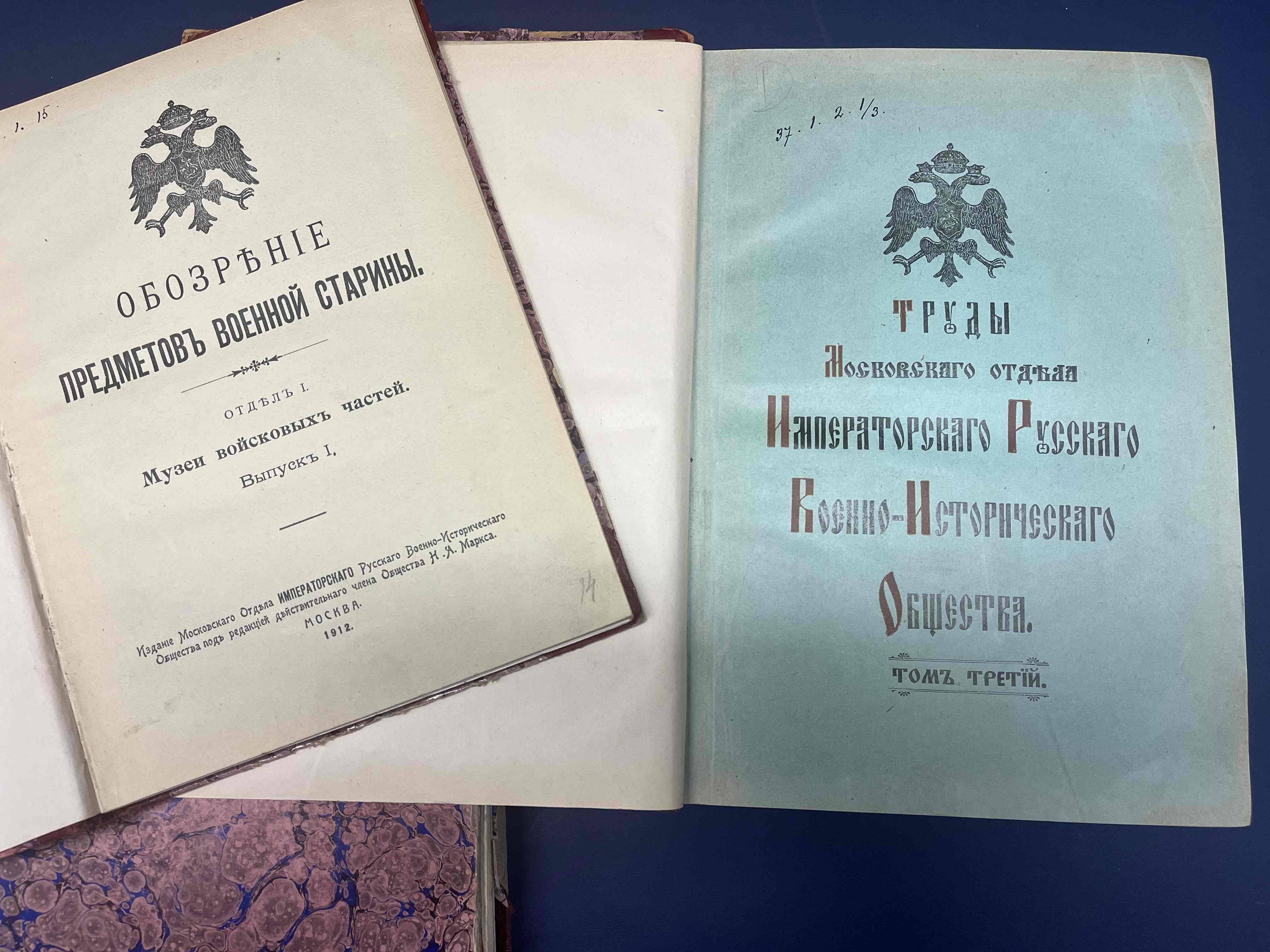 Императорское Русское военно-историческое общество, одно из четырех Императорских обществ, было создано по Указу Императора Николая II в 1907 году. Общество ставило своей задачей объединение граждан России для изучения и сохранения сведений о военной истории, поиск и археологические исследования мест сражений прошлого, создание и описание военно-исторических музеев, коллекционирование военной формы, оружия и атрибутики, публикация сведений о наследии предков и текущих событиях. Формально прекратило свою деятельность с началом Первой мировой войны.