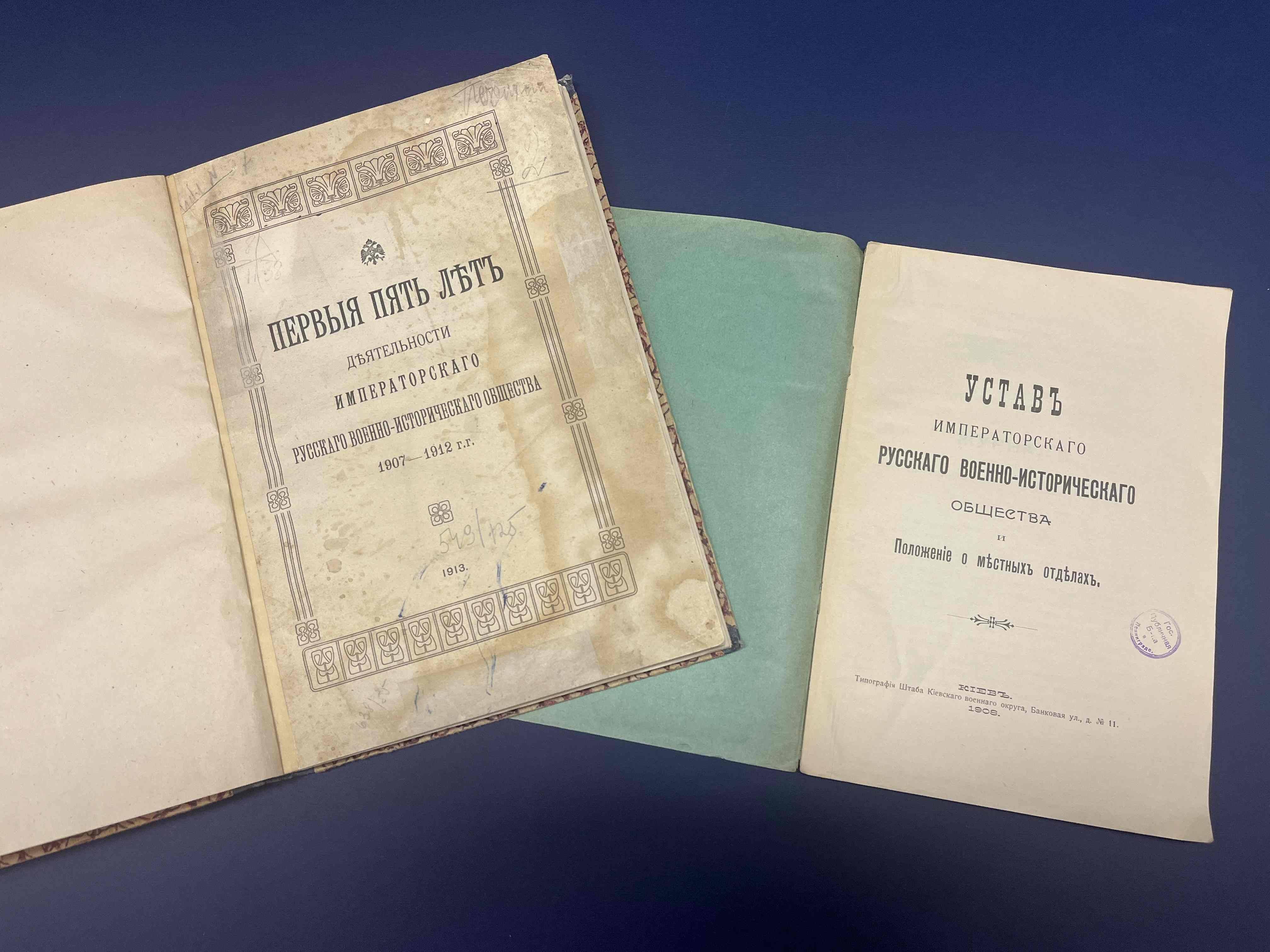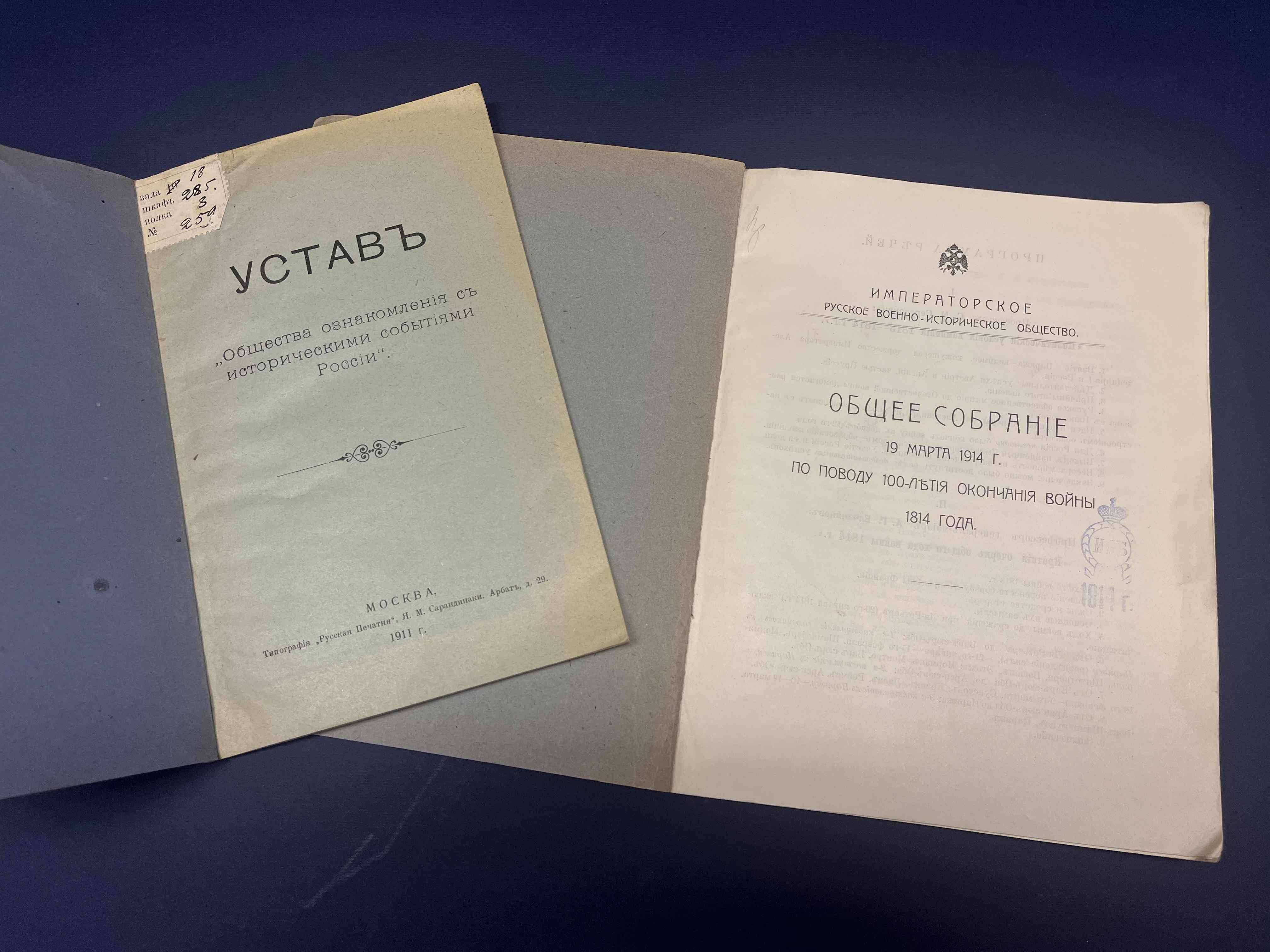 Впервые на экспозиции будут представлены редкие документы, рассказывающие об учреждении и многогранной деятельности Императорского Русского Военно-Исторического общества. Это первый печатный Устав Общества, послание к императору Николаю II, переписка самих членов ИРВИО по различным вопросам развития военно-исторической науки, редкие издания и журналы (1908-1914 гг.), фотоснимки первых памятников, установленных по инициативе военных историков; материалы, связанные с юбилейными мероприятиями, организованными ИРВИО к 100-летию Отечественной войны 1812 г. и другим памятным датам в военной истории России; документы, относящиеся к благотворительной деятельности Общества в годы Первой мировой войны.